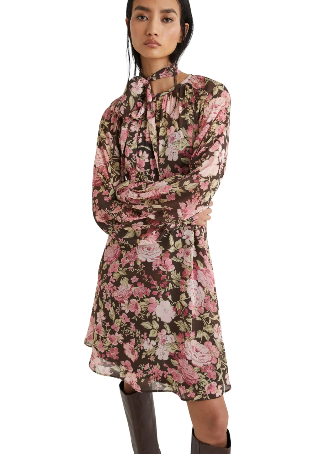 Scopri il fascino dell’abito Marella marrone da donna, un capo esclusivo che coniuga eleganza e comfort. Realizzato in una deliziosa georgette con stampa floreale, questo abito corto si distingue per il suo design romantico e metropolitano, pensato per esaltare ogni silhouette.