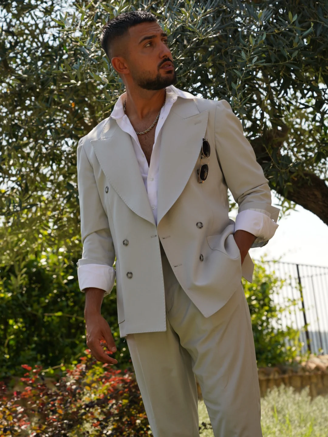 Ispirandoci allo stile classico inglese degli anni ’70 e ’80, abbiamo rivoluzionato la struttura simmetrica, conferendo un tocco moderno con raffinate tecniche dell’antica sartoria napoletana.