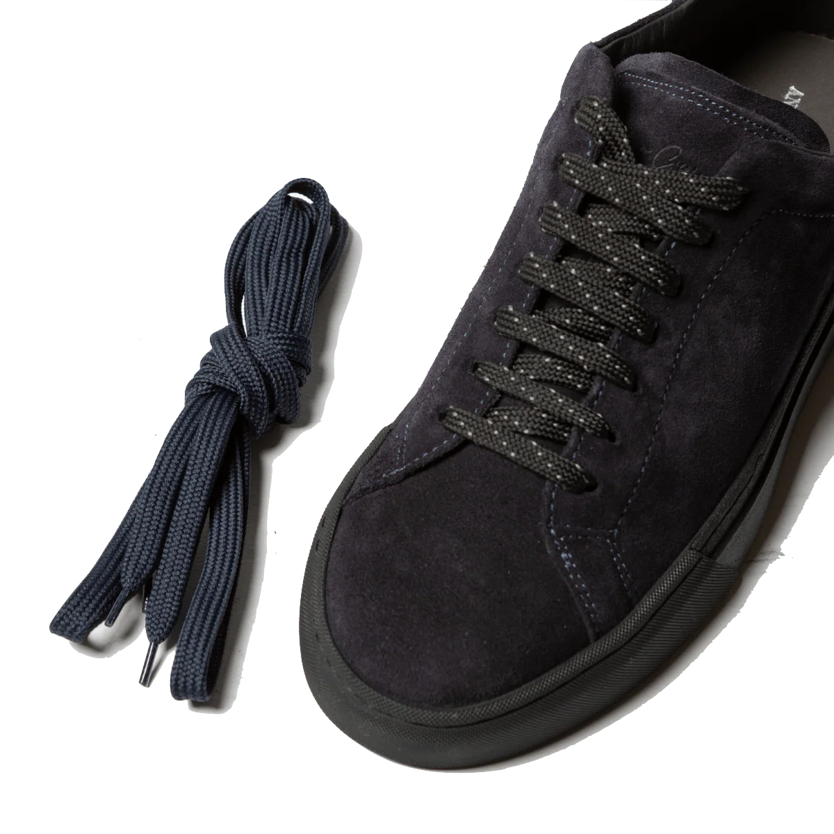Sneakers dalla linea semplice e pulita, Made in Tuscany, in pelle scamosciata blu. Interno foderato in pelle, sottopiede leggermente imbottito, estraibile. Realizzate seguendo procedimenti artigianali e impiegando pellami pregiati del distretto conciario toscano. Fondo in gomma nera; lacci in tessuto, intercambiabili all’interno della scatola