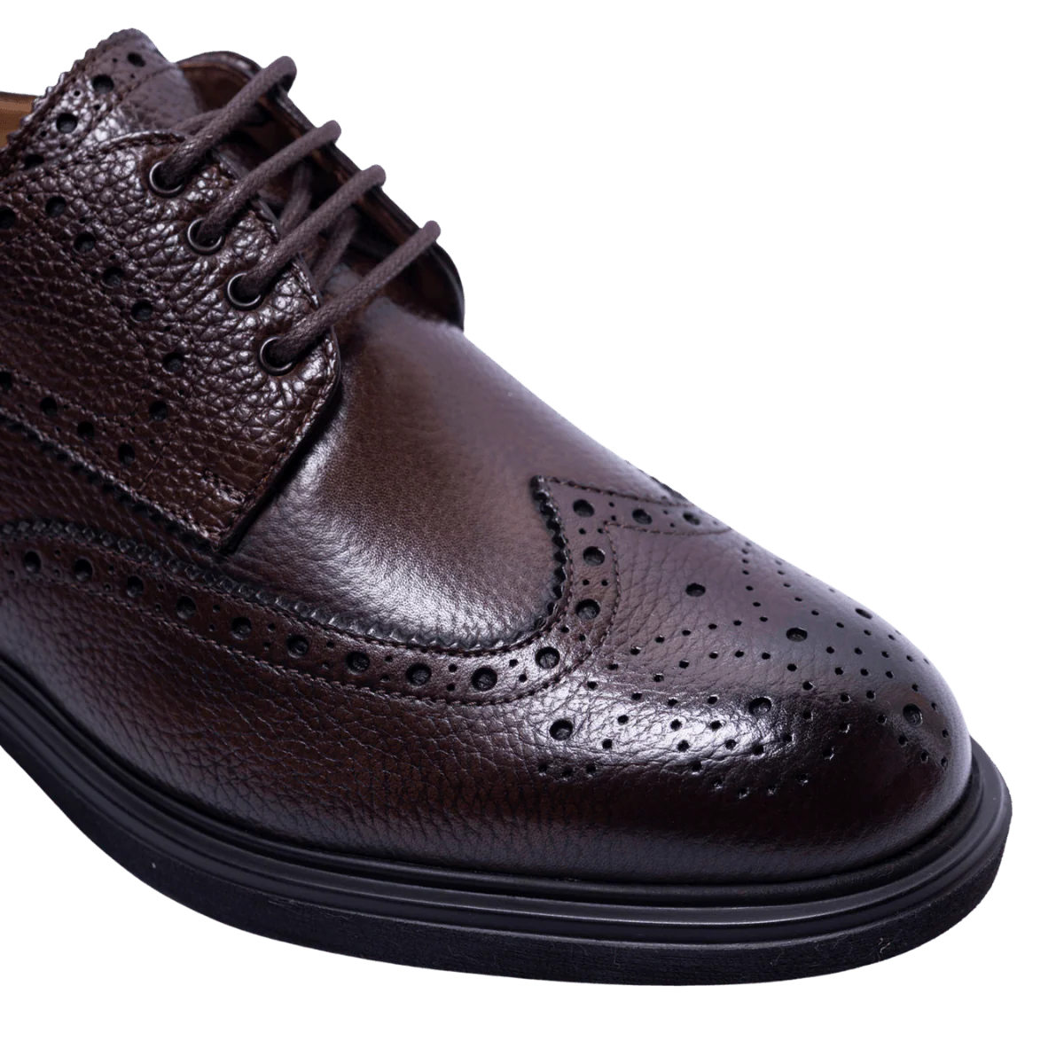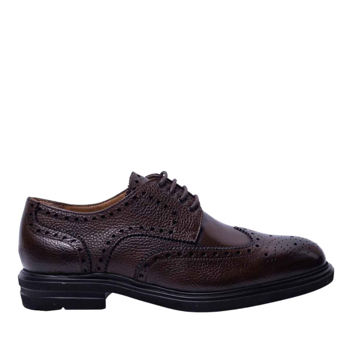 Scarpe classiche allacciate dello storico calzaturificio campano, che impiega pellami di alta qualitร , di origine italiana. Pelle martellata marrone, coda di rondine, fodera in pelle. Fondo in gomma