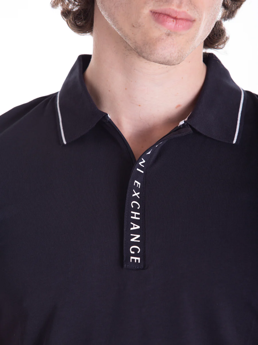 Armani Exchange Polo 8NZF71ZJH2Z Blu Dettagli:Armani Exchange Polo 8NZF71ZJH2Z Blu -Collo a punta bordato colore a contrasto– Chiusura frontale a bottoni coperta con patta logata– Inserto bordato colore a contrasto sulla manica