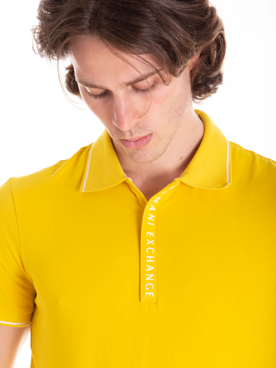 Armani Exchange Polo 8NZF71ZJH2Z Senape Dettagli:Armani Exchange Polo 8NZF71ZJH2Z Senape– Collo a punta bordato colore a contrasto– Chiusura frontale a bottoni coperta con patta logata– Inserto bordato colore a contrasto sulla manica