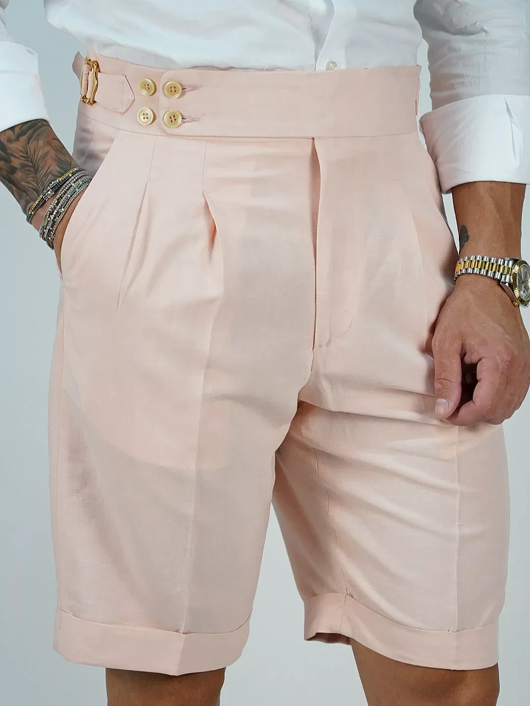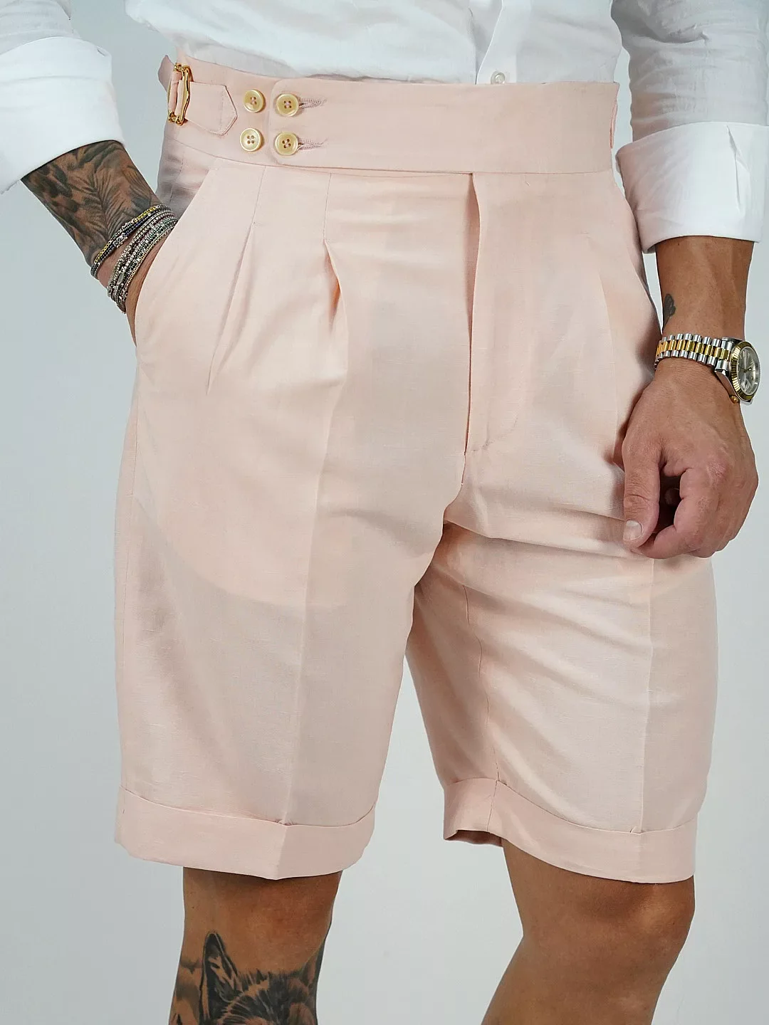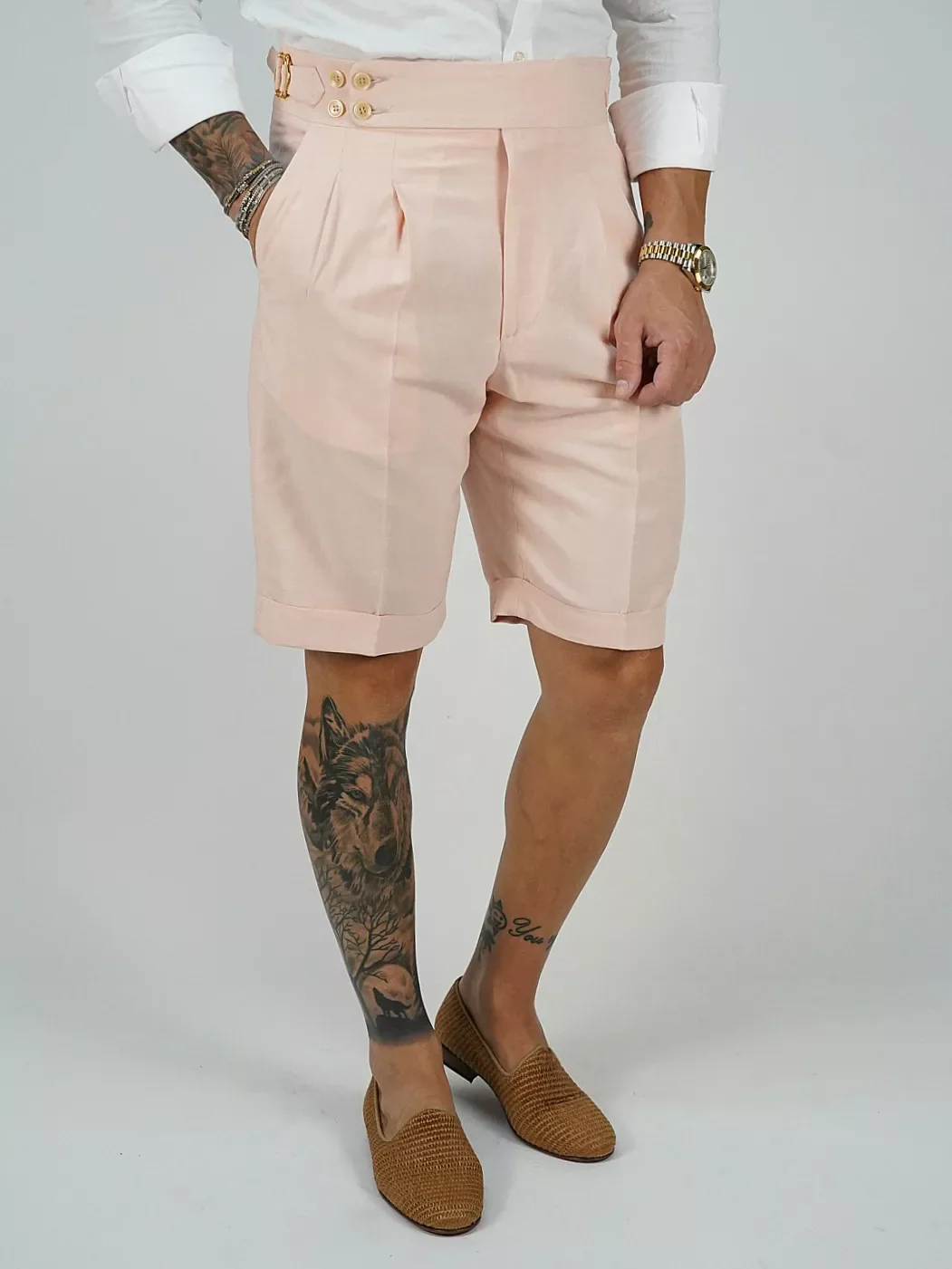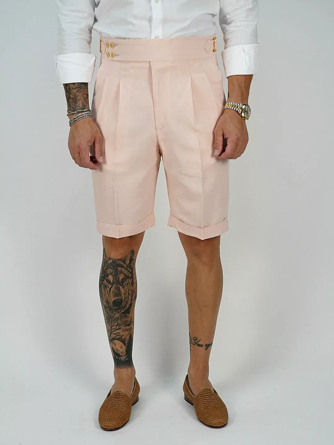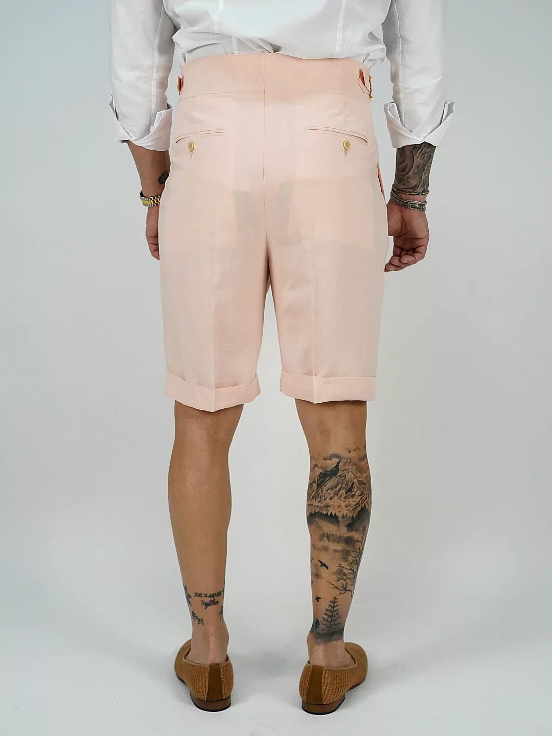 Bermuda 4 bottoni in lino – Fibbie stringenti laterali | Rosa