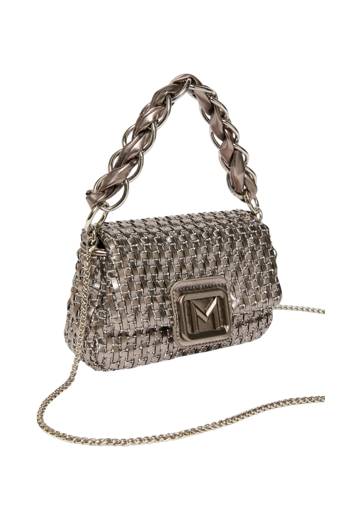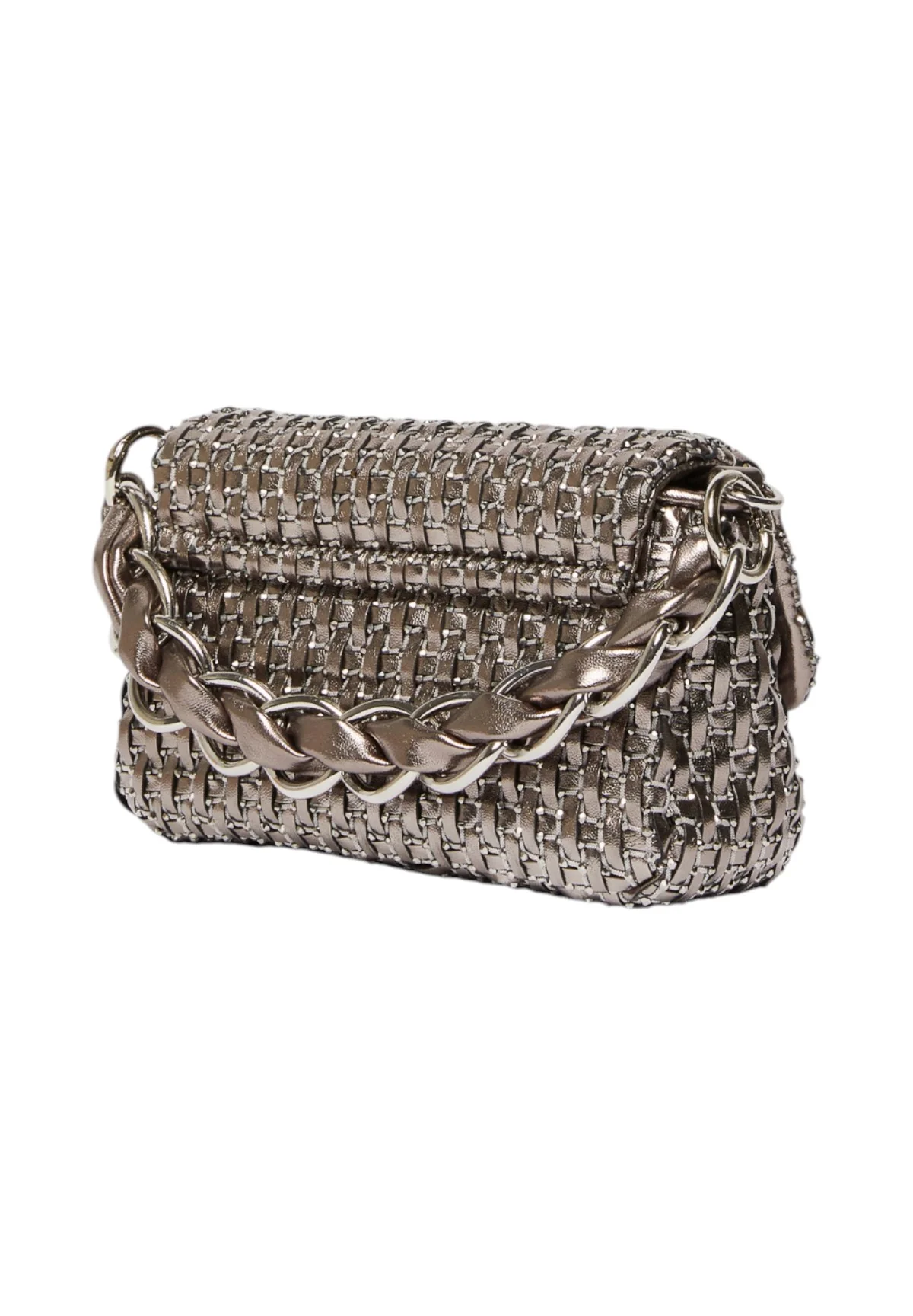 La Borsa a Spalla Marella Argento è un accessorio unico nel suo genere, progettato per la donna moderna che ama distinguersi con eleganza. Con il suo design sofisticato e l’effetto woven dalla finitura metallizzata, aggiungerà un tocco glamour al tuo outfit, perfetto per serate speciali e occasioni eleganti.