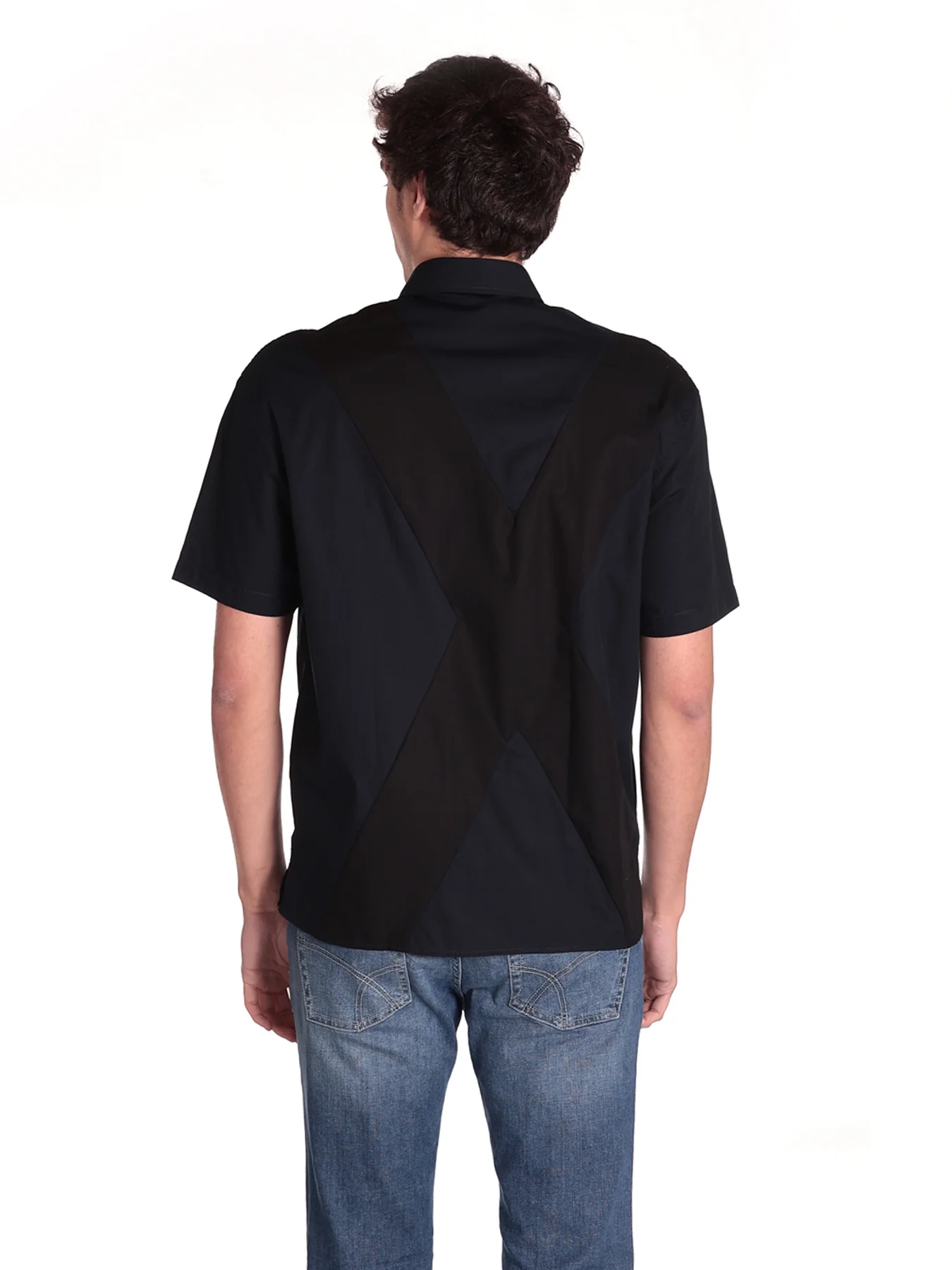 Colletto classico camicia. Manica corta. Chiusura frontale con bottoni a scomparsa. 100% Cotone. Il modello è alto 1.90 e indossa la taglia M.