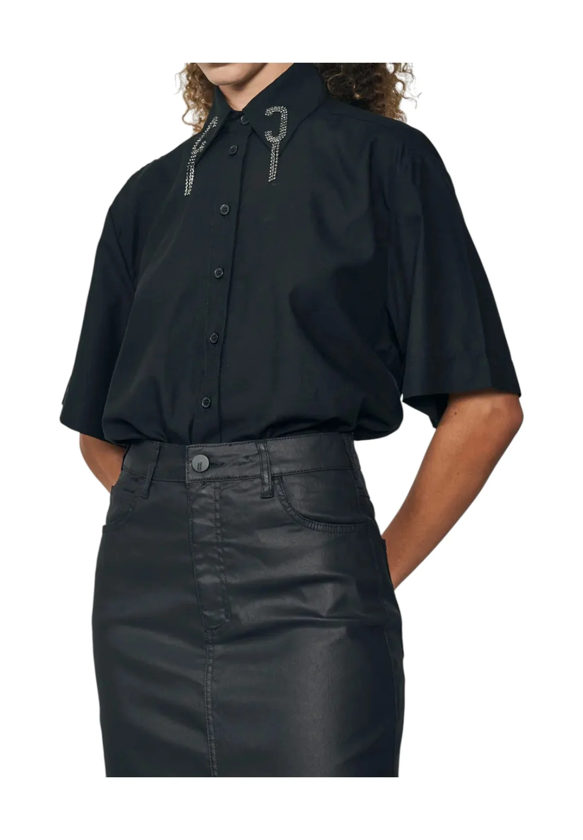 Camicia a Maniche Corte camicia logo strass 300102925 Nero