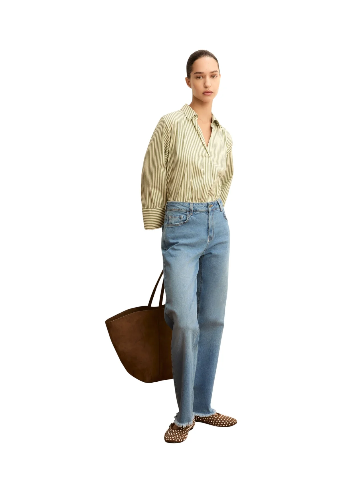 Per un look completo ed elegante, abbina la Camicia a Maniche Lunghe Emme Marella Verde con una giacca sartoriale chiara e pantaloni a sigaretta. Per un tocco piรน casual, opta per jeans skinny e un paio di mocassini. Gli accessori come una borsa a tracolla e orecchini minimalisti completeranno il tuo outfit con stile.