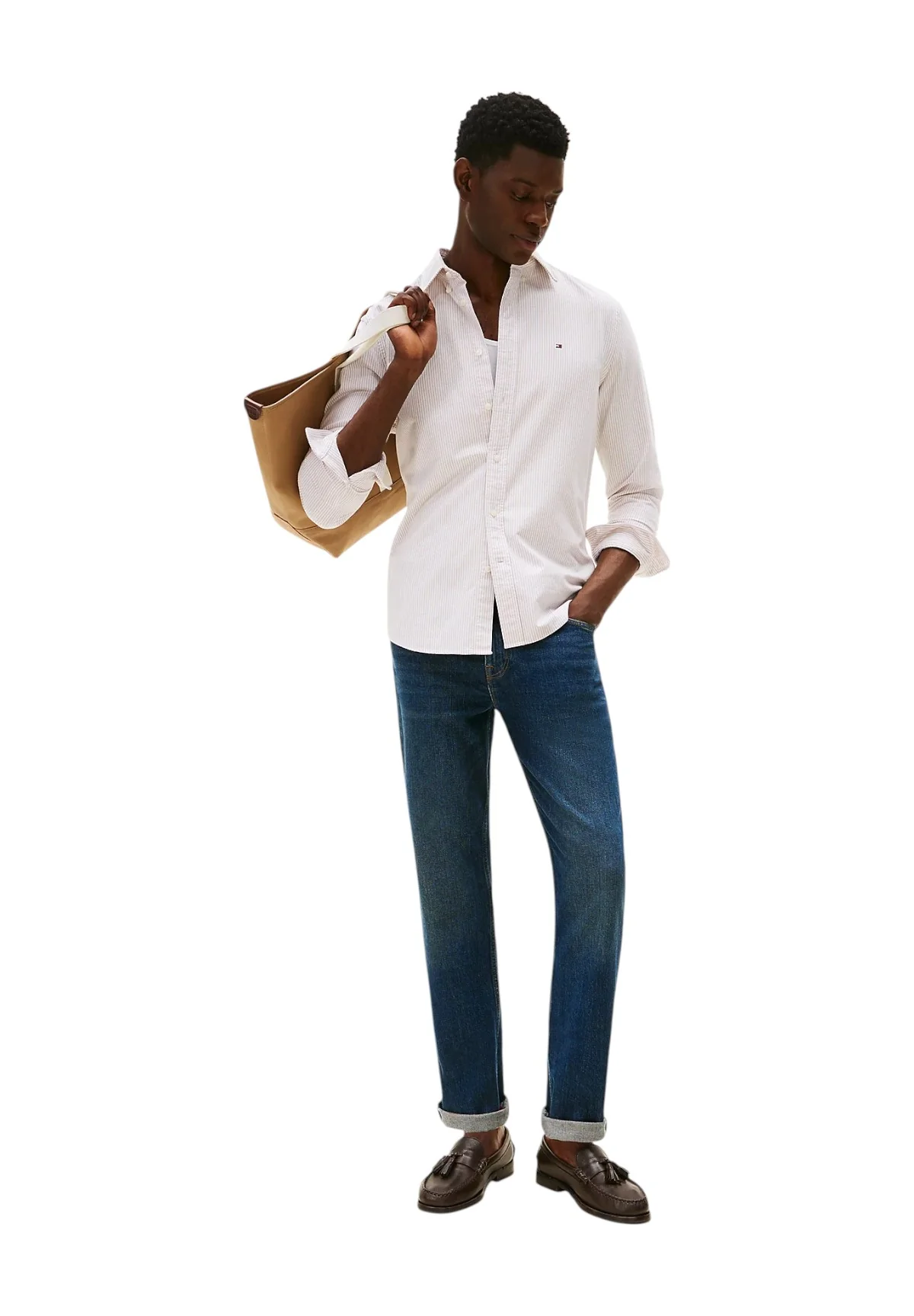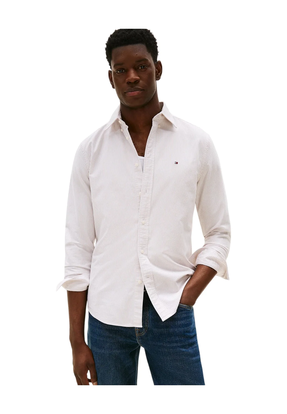 La Camicia a Maniche Lunghe Beige Tommy Hilfiger Uomo รจ incredibilmente versatile, ideale da indossare sotto una giacca per un incontro di lavoro o abbinata a un paio di jeans per un look casual chic. Completa il tuo outfit con scarpe classiche o sneakers eleganti per un tocco di personalitร . Non dimenticare un orologio minimalista per il massimo dello stile.