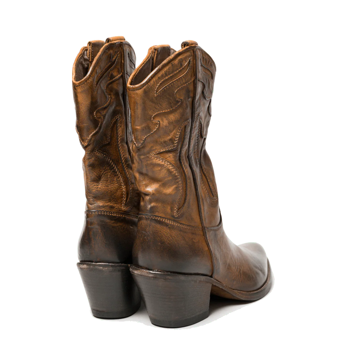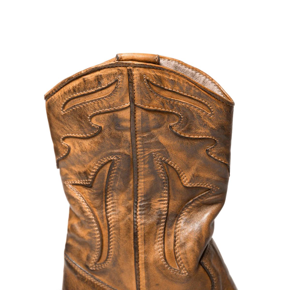 Stivaletti camperos, 100% Made in Italy, in pelle morbida antiquata color cuoio e fondo in cuoio. Keep Originals รจ il connubio tra tradizione e innovazione: il vintage viene reinterpretato secondo nuovi schemi, l’effetto rovinato viene tirato a lucido, in modo elegante e raffinato. Le calzature sono realizzate attraverso lavorazioni artigianali, i pellami lavorati nelle migliori concerie toscane con processi naturali che garantiscono massima vestibilitร , sensazioni tattili e profumi autentici. Le cuciture sono eseguite a mano.