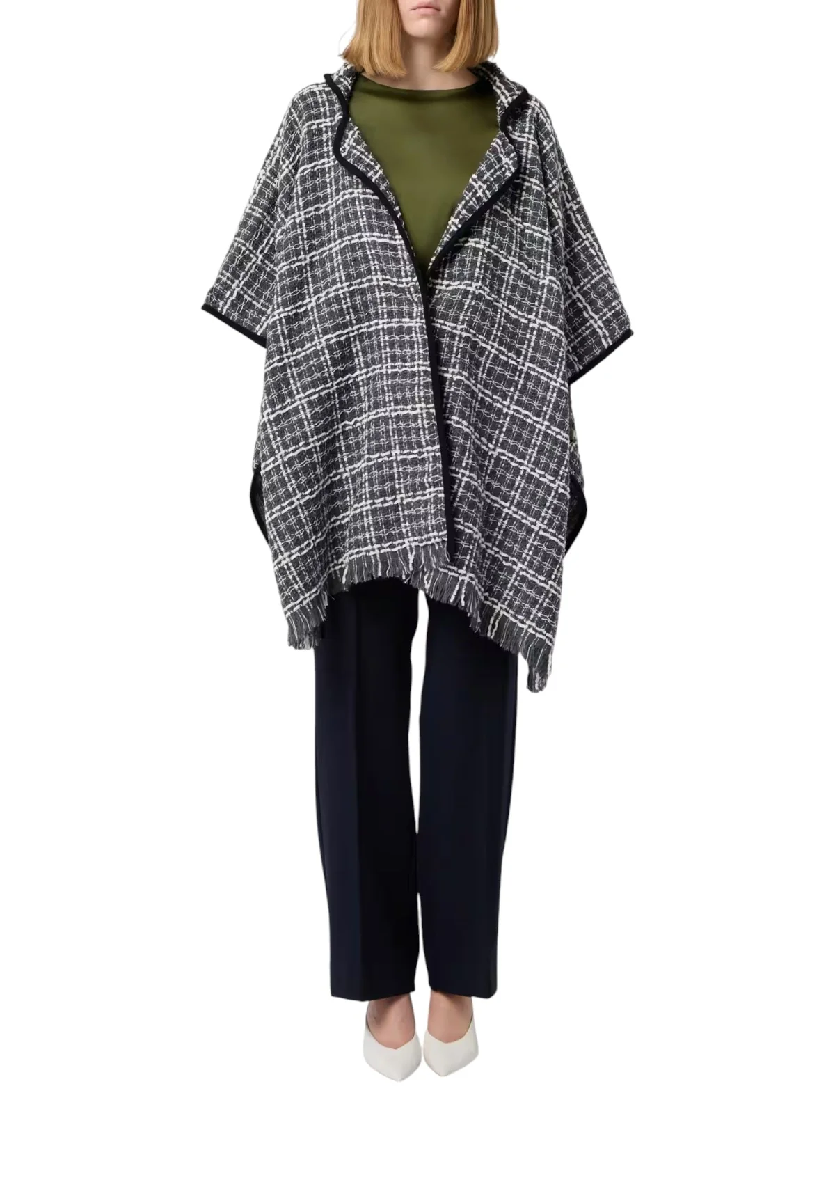 Punta su un look raffinato abbinando la Cappa Emme Marella Grigio a pantaloni neri a sigaretta e stivali alti. Completa il tuo outfit con accessori minimal, come una borsa a spalla sobria e orecchini a cerchio, per un’eleganza senza tempo che non passa inosservata.