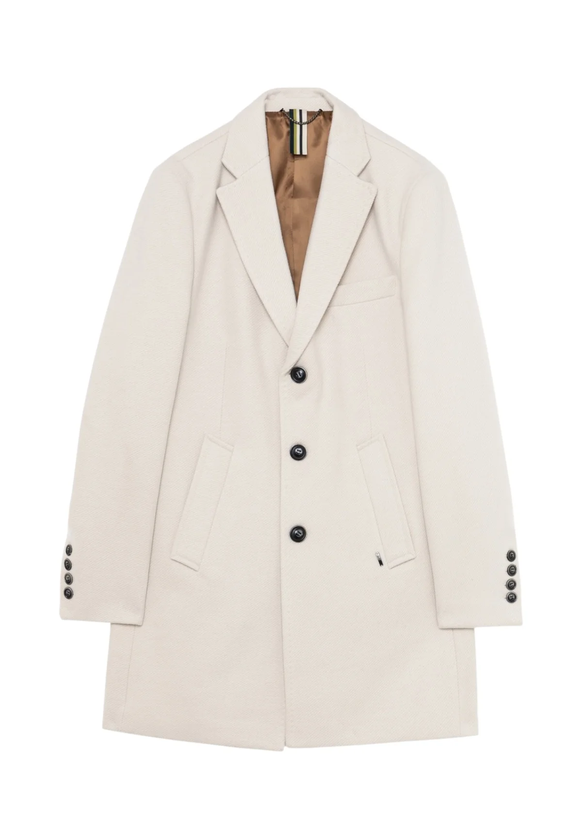 Con il suo taglio raffinato e i dettagli curati, il cappotto Gianni Lupo beige uomo si distingue per: