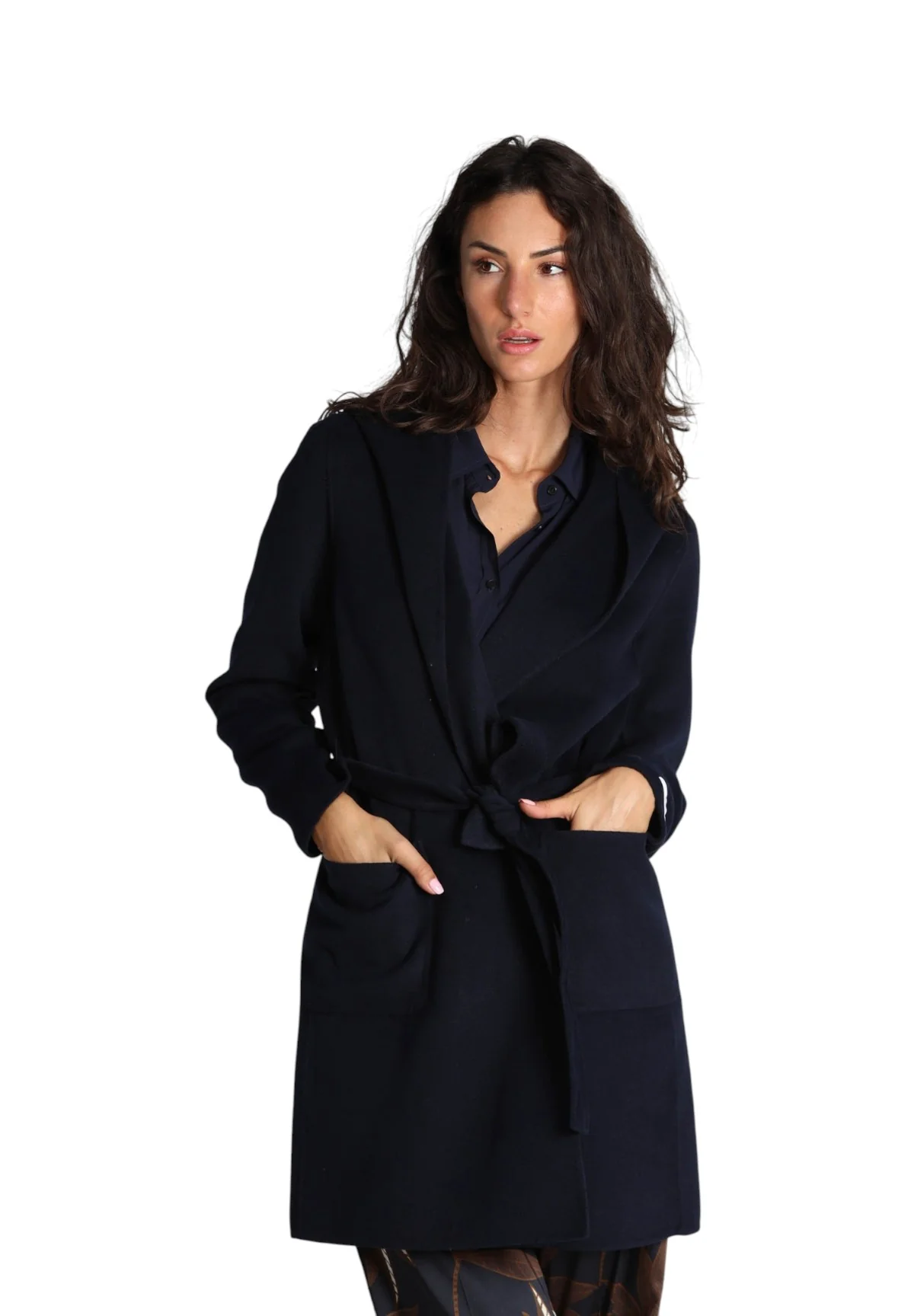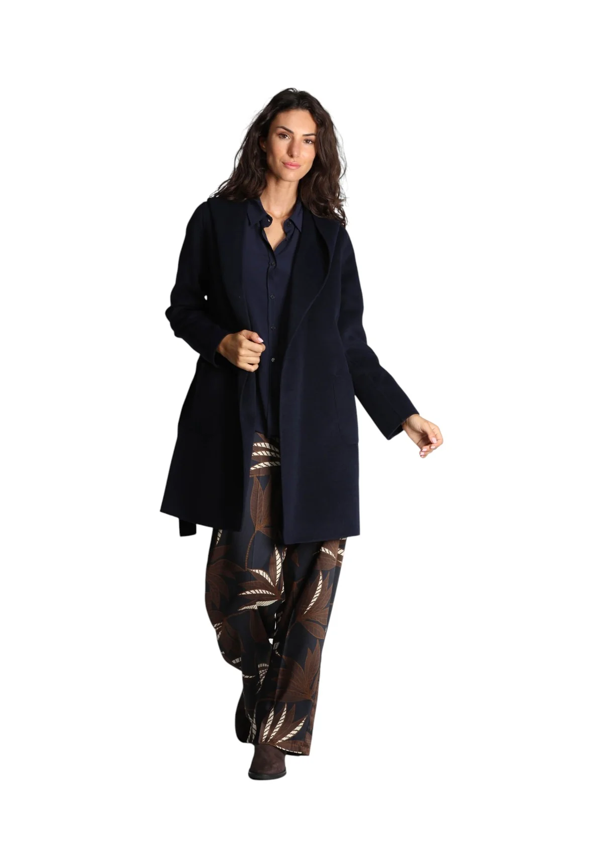 Scopri il cappotto Oblato Navy, un capo elegante e versatile che unisce comfort e stile. Questo cappotto blu in panno double è perfetto per le giornate più fredde, con la sua linea morbida e il collo con cappuccio che garantisce protezione dalle intemperie.