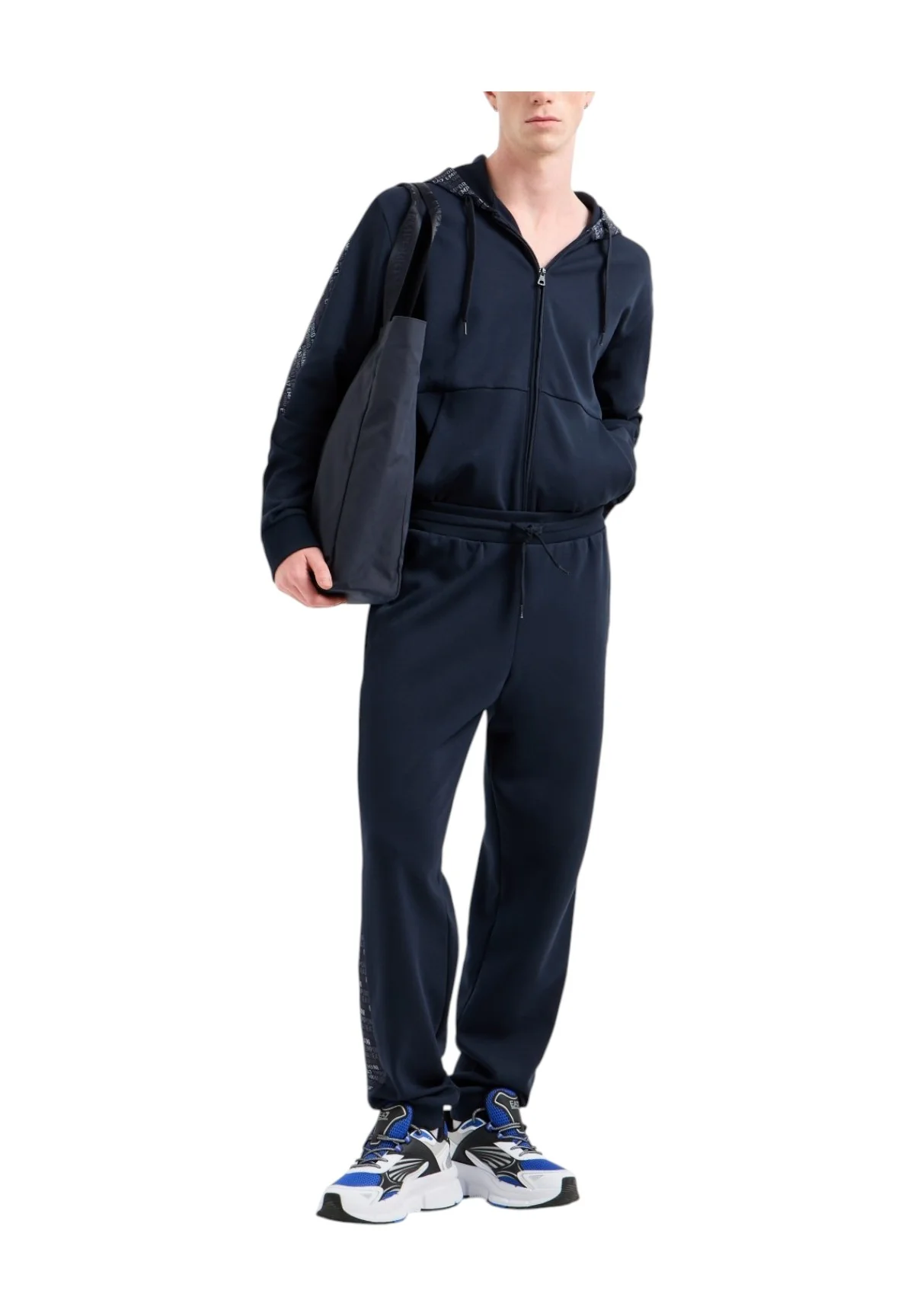 Questa felpa blu si abbina perfettamente con un paio di jeans scuri o pantaloni chino per un look casual ma curato. Completa l’outfit con delle sneakers bianche e accessori minimalisti per un tocco sofisticato. Se desideri un outfit piรน sportivo, abbinala a dei joggers e scarpe da ginnastica EA7 per un comfort ottimale.