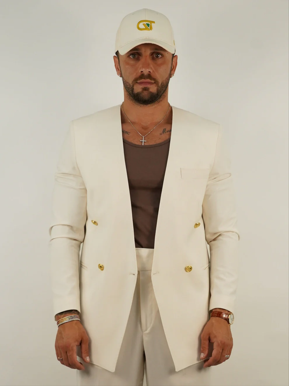 Giacca doppiopetto senza collo – Linea Easy | Panna
