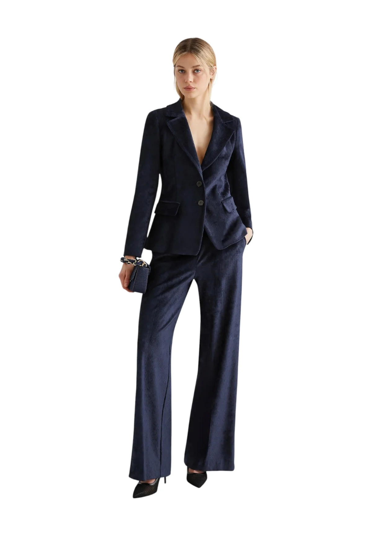 Per un look da sera impeccabile, abbina la Giacca Marella Blu con i pantaloni coordinati della stessa collezione. Se preferisci un approccio più casual, opta per un denim scuro e un top leggero, completando il look con accessori color argento per un tocco di modernità.