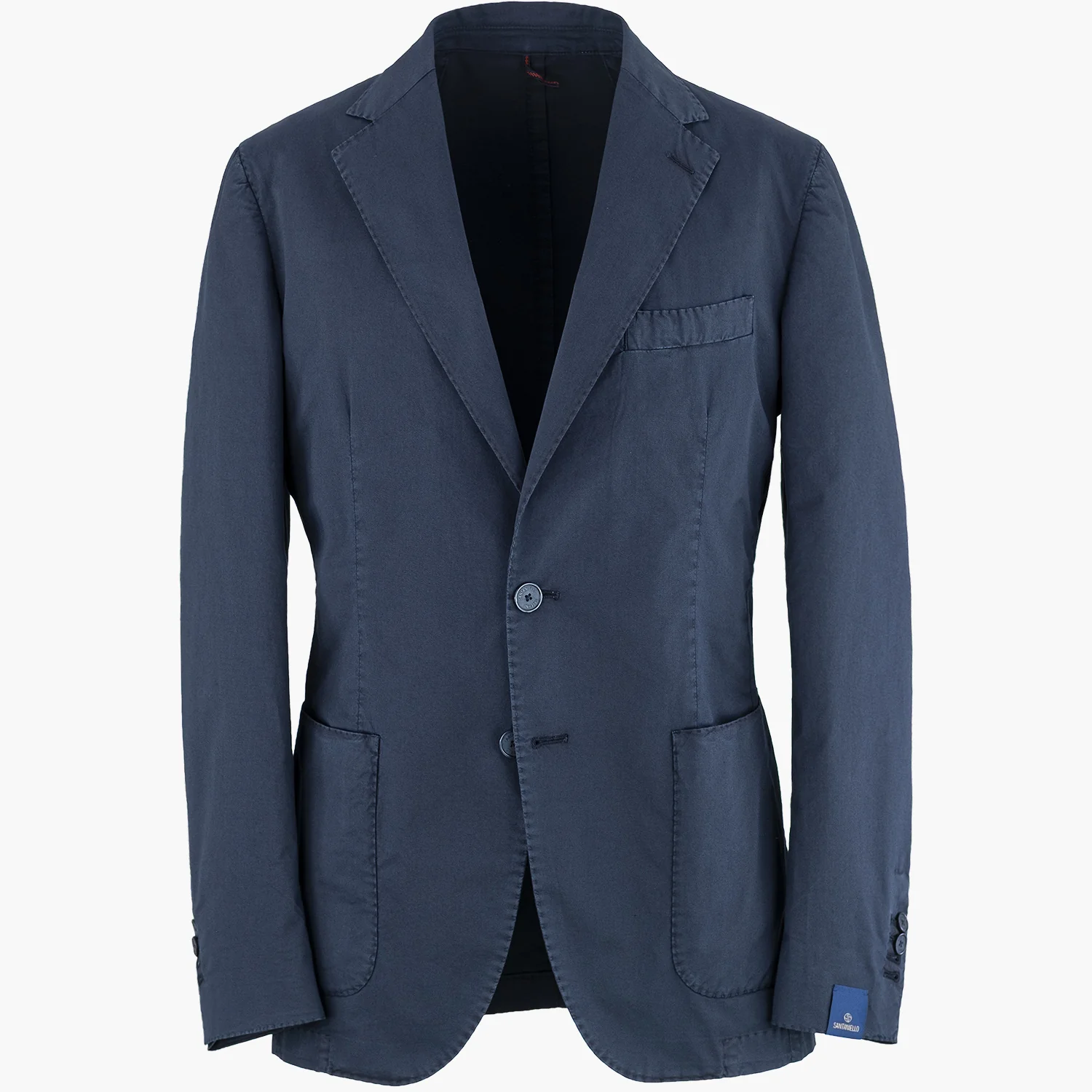 Giacca SANTANIELLO Art. DSE2530 in Cotone Super Light Tinto Capo Col. 79B Blu Navy. Giacca sartoriale sfoderata realizzata in cotone tinto capo, un tessuto leggero, confortevole e molto piacevole al tatto. Due bottoni, impuntura MF, tasche a toppa, asole aperte e doppio spacco posteriore.