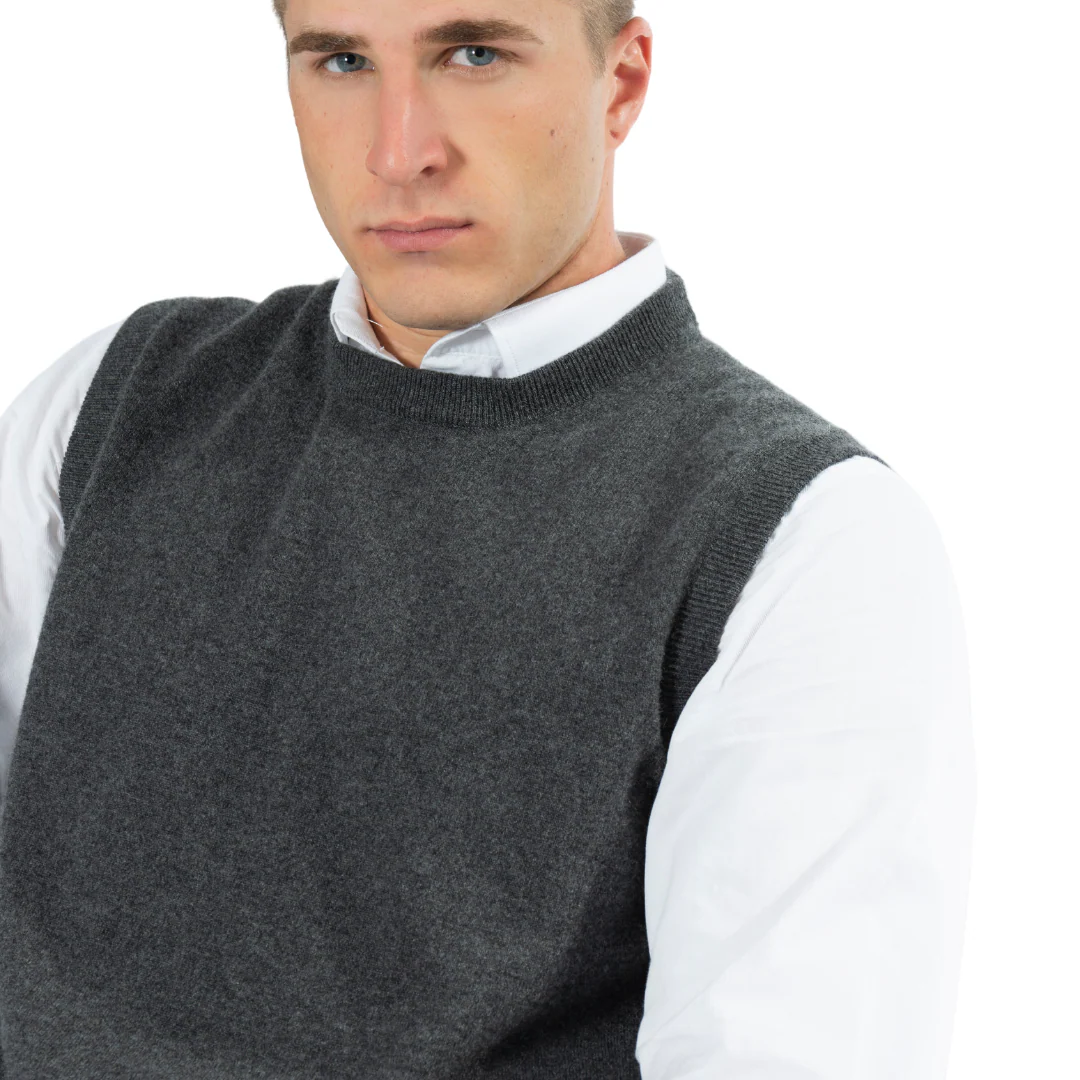 Un capo elegante e senza tempo, il gilet girocollo 100% cashmere รจ la scelta ideale per chi cerca comfort, lusso e stile.