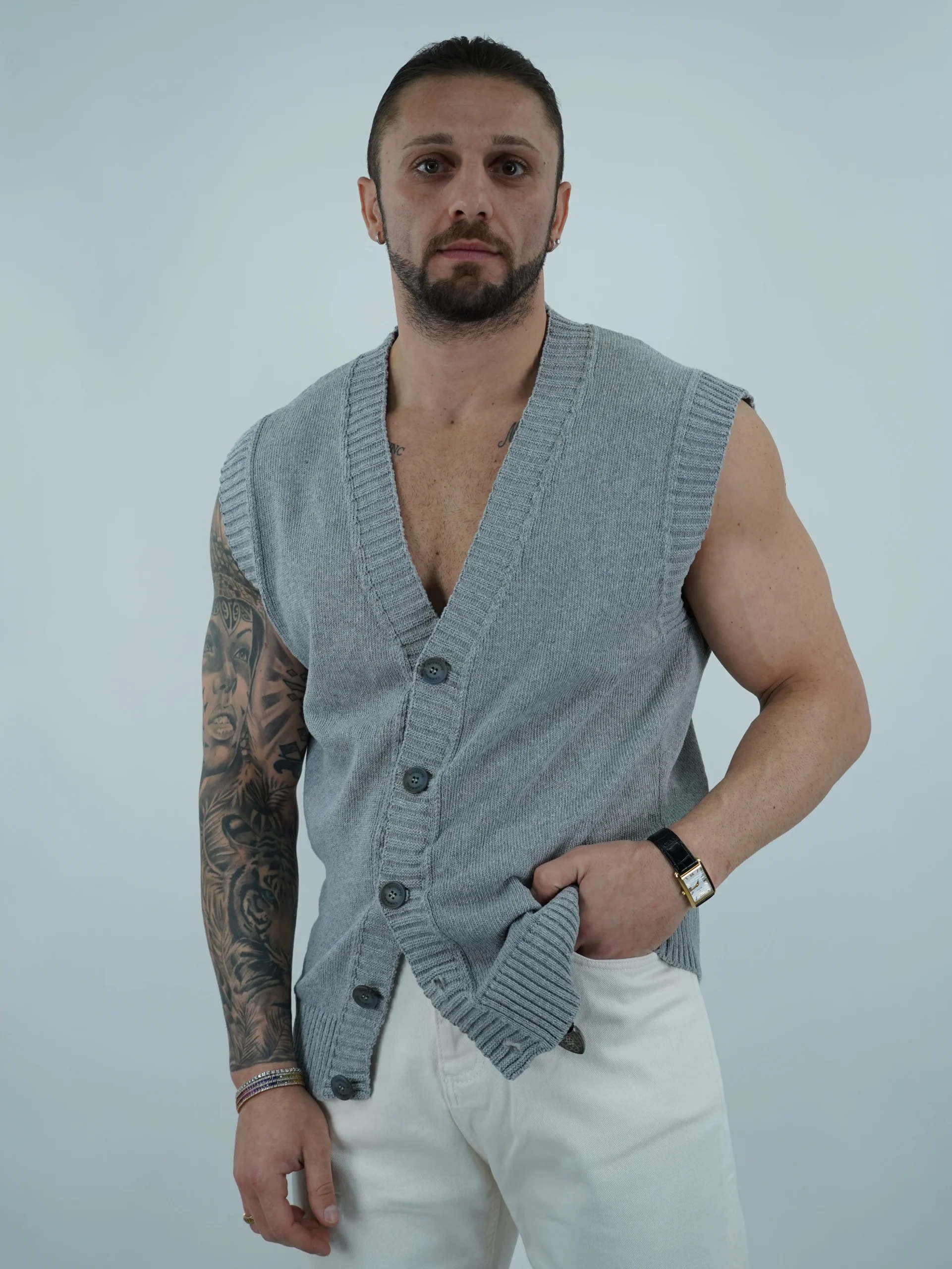Gilet smacchinato grigio fumo
