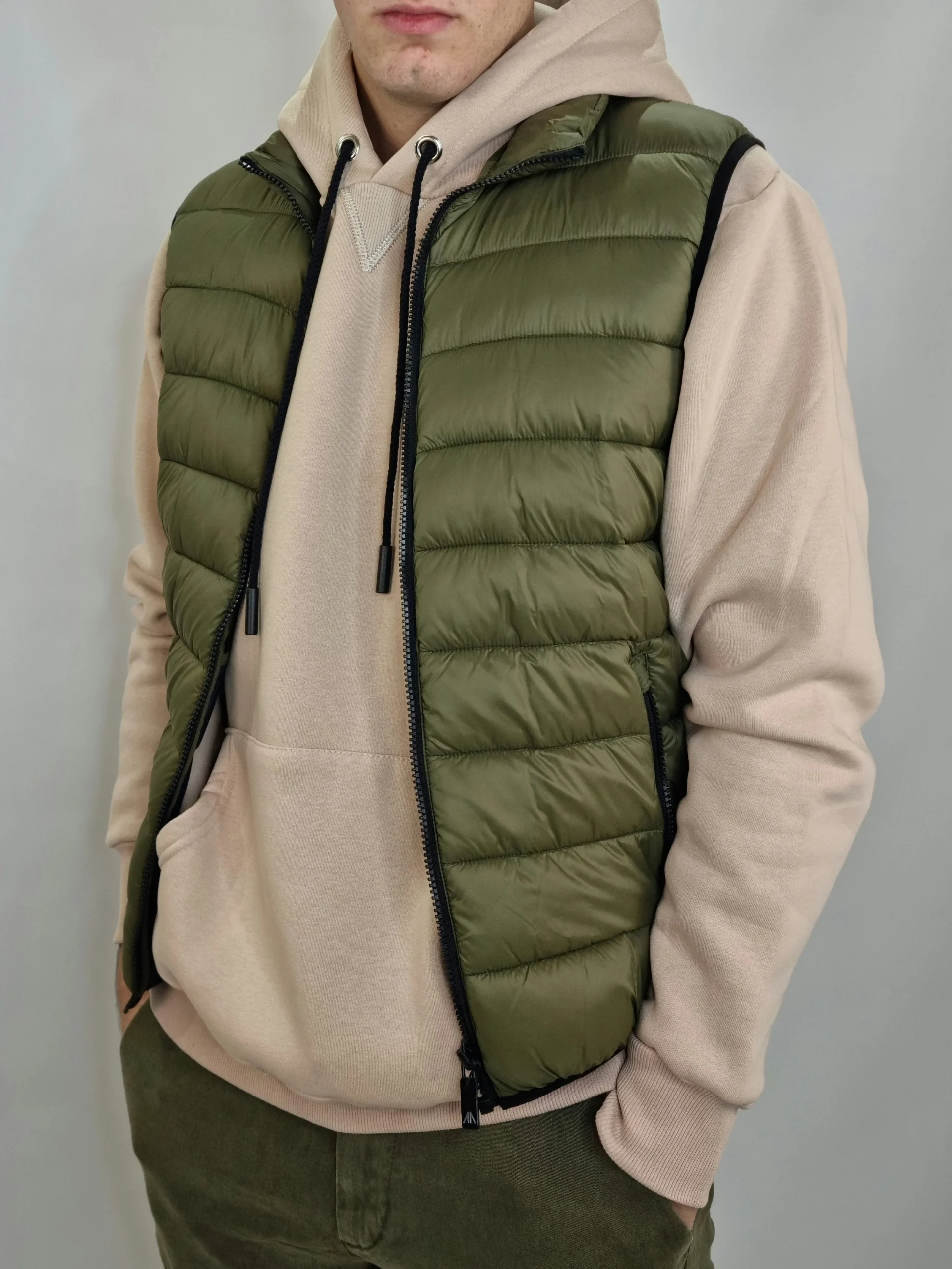Giubbino imbottitura eco piuma taglie M ( 44/46) L (46/48) XL (50/52) XXL ( 52/54) composizione 100% poliestere Indossata in taglia L su una 48/50 altezza 185 cm