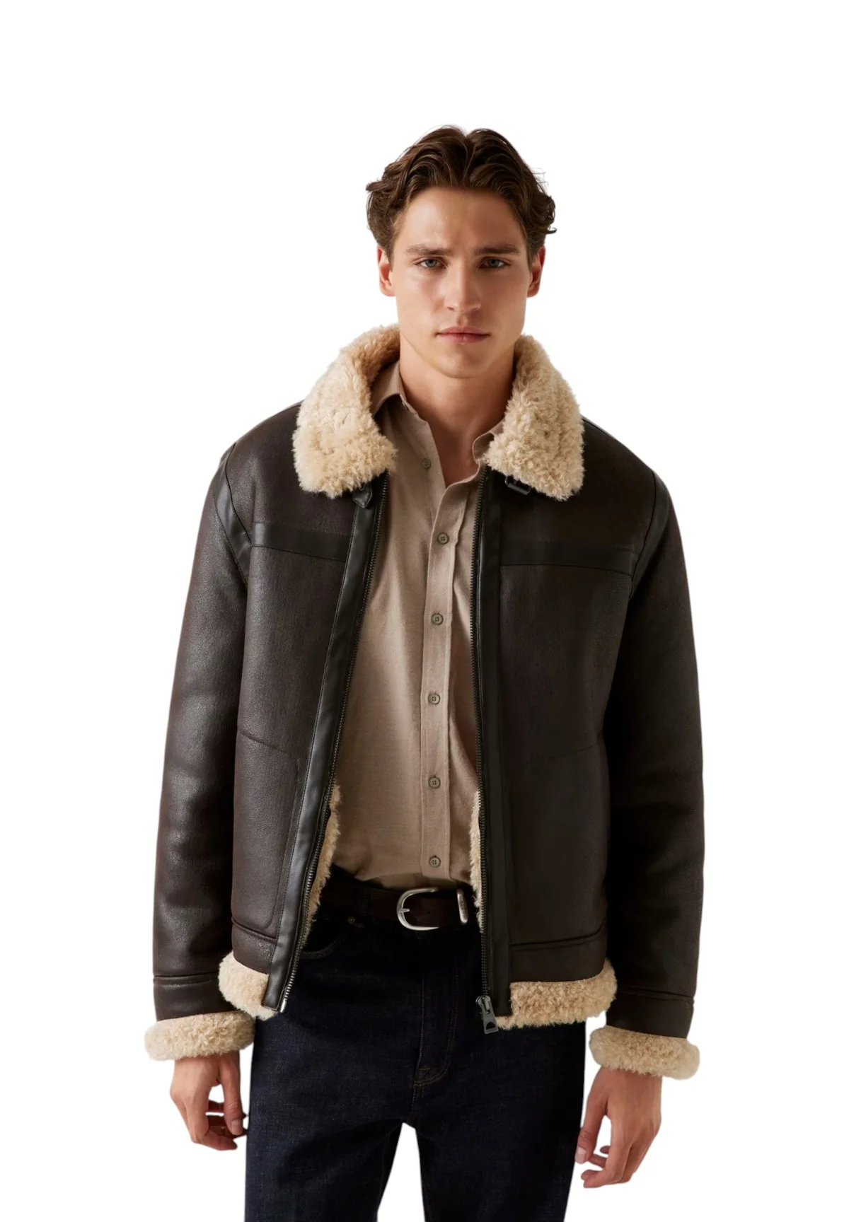 - Collo e finiture in pile di simil shearling, per un tocco di eleganza distintivo.