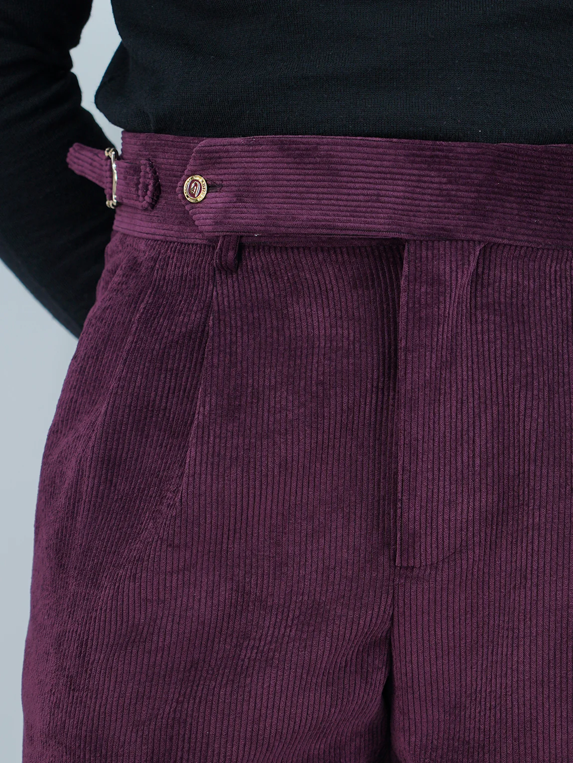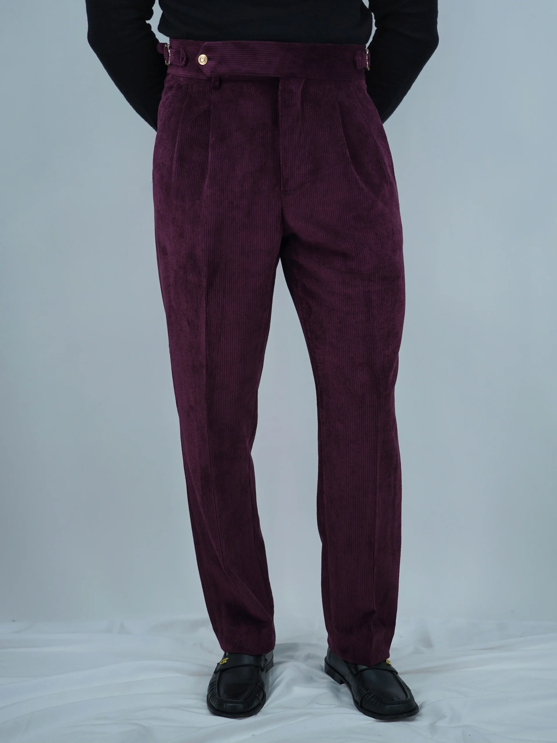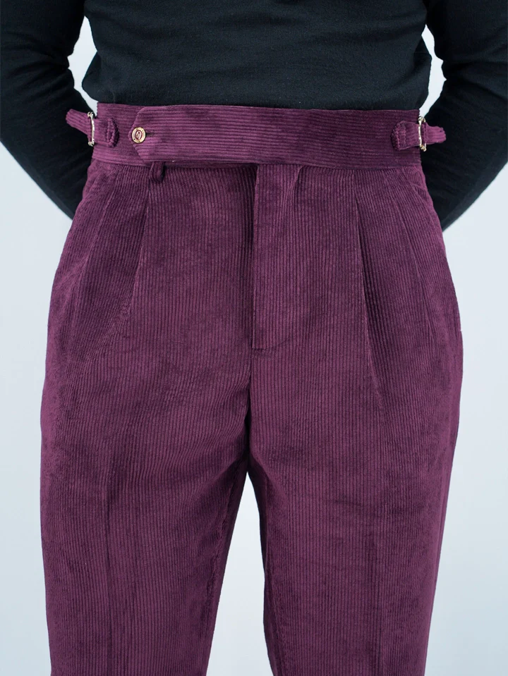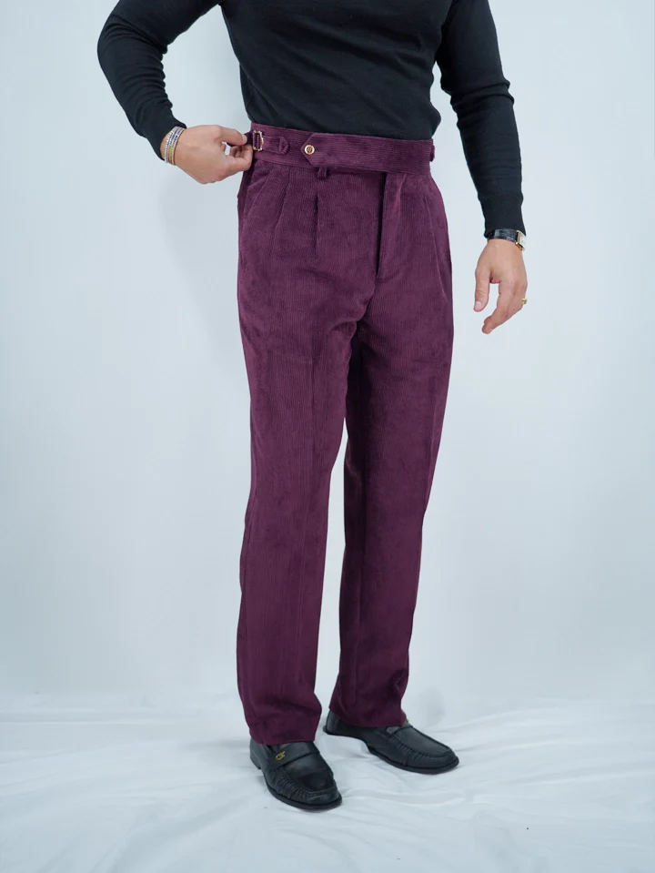 Gurkha 1 bottone In Velluto a Coste Con Bottone Oro – Fondo 20/23cm | Doppia Fibbia Regolabile | Bordeaux