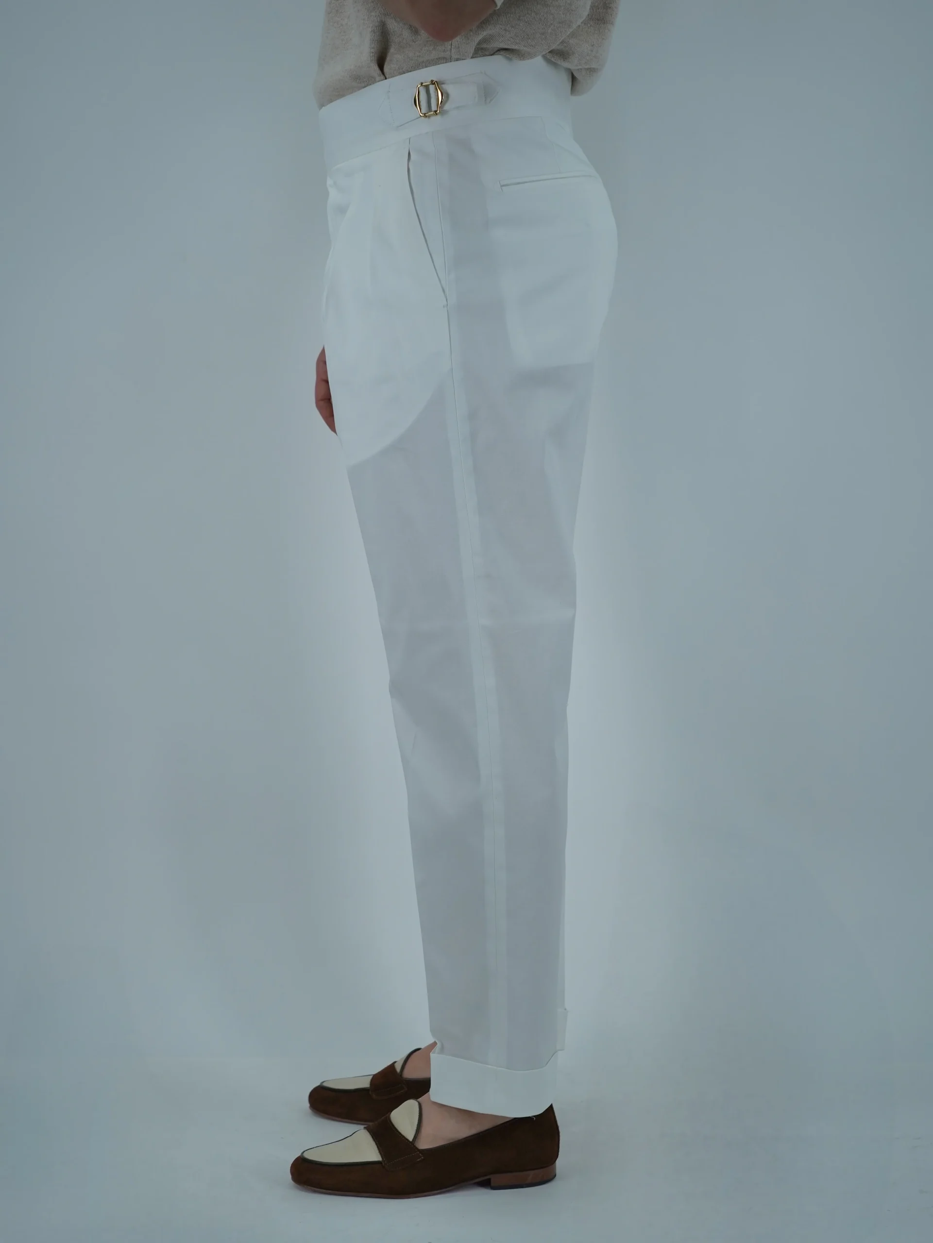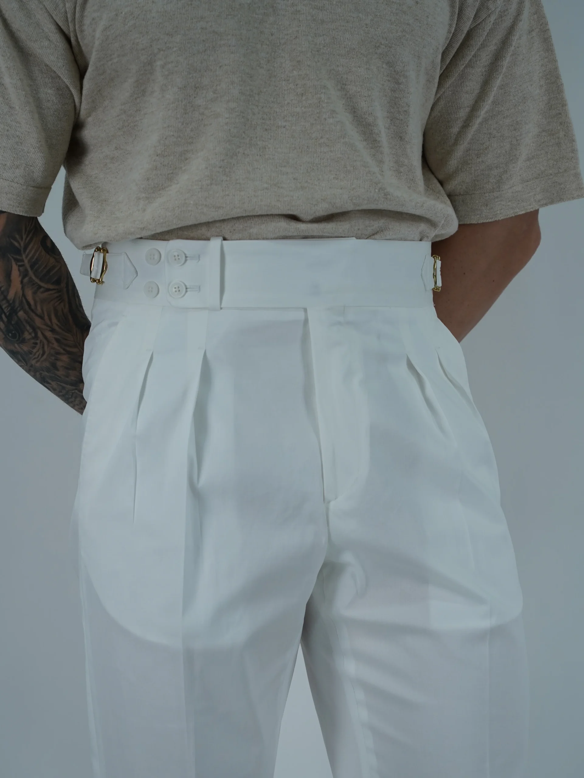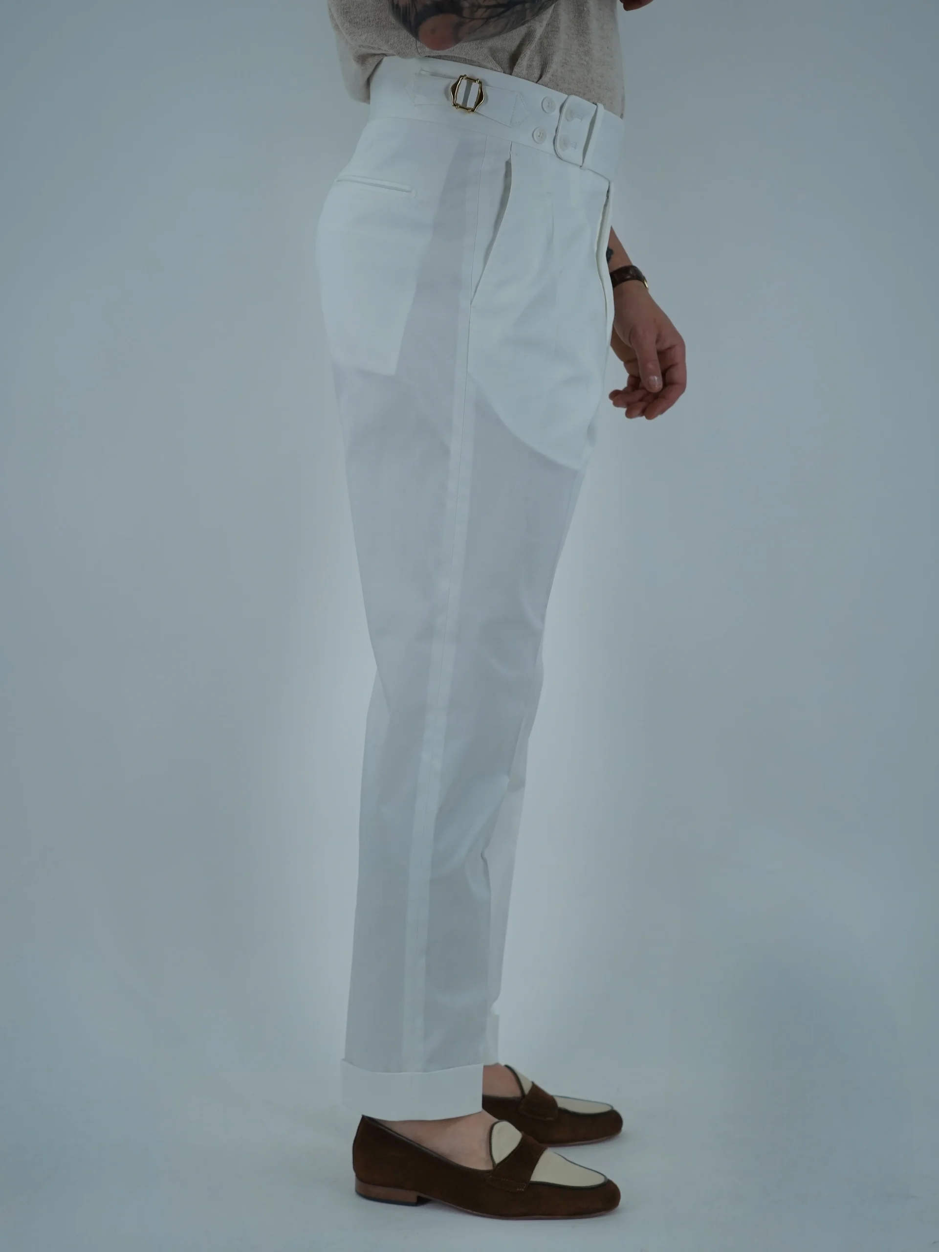 Gurkha 4 Bottoni In Cotone – Fondo 17/20cm | Doppia Fibbia Regolabile | Bianco Santorini