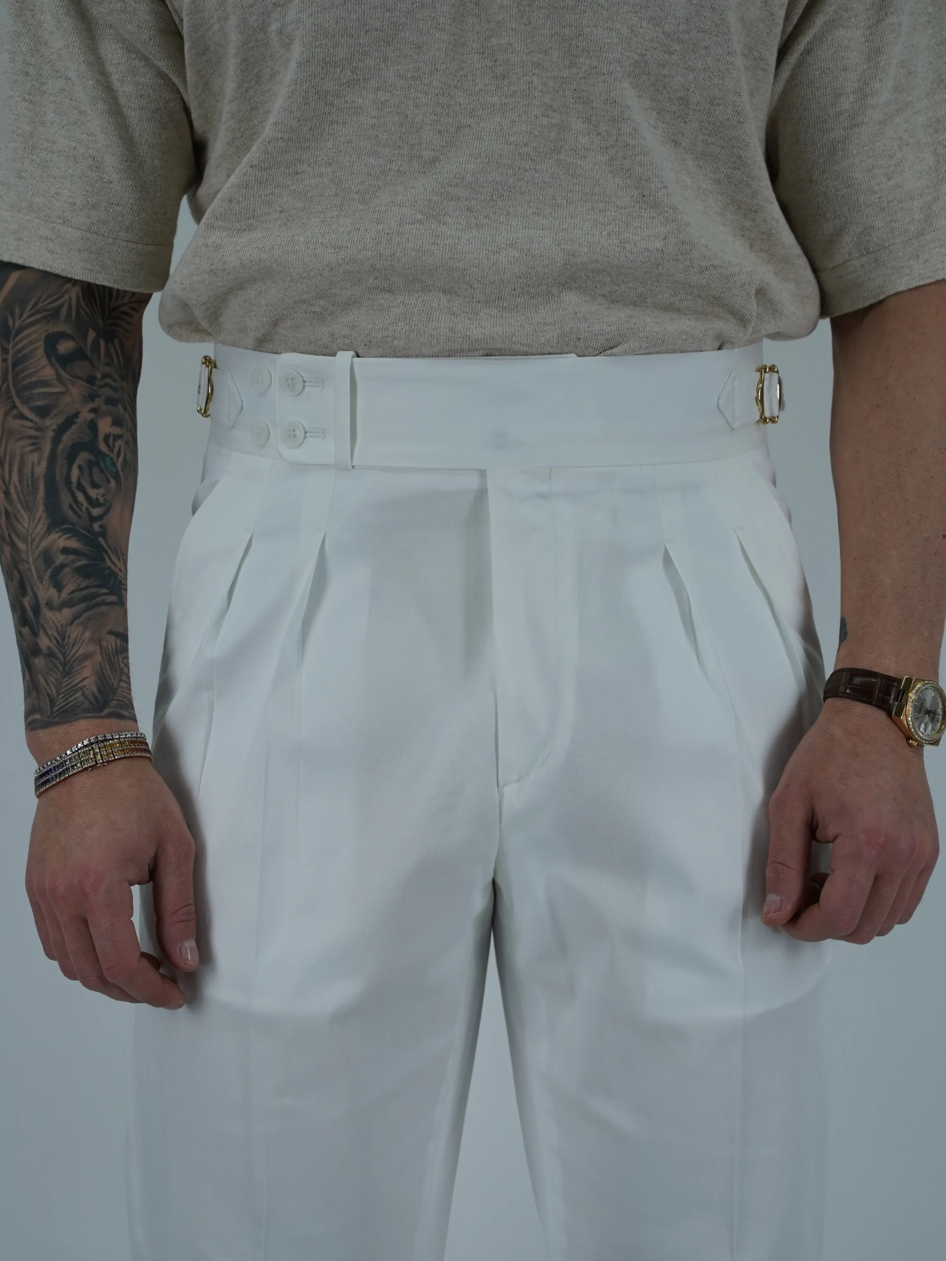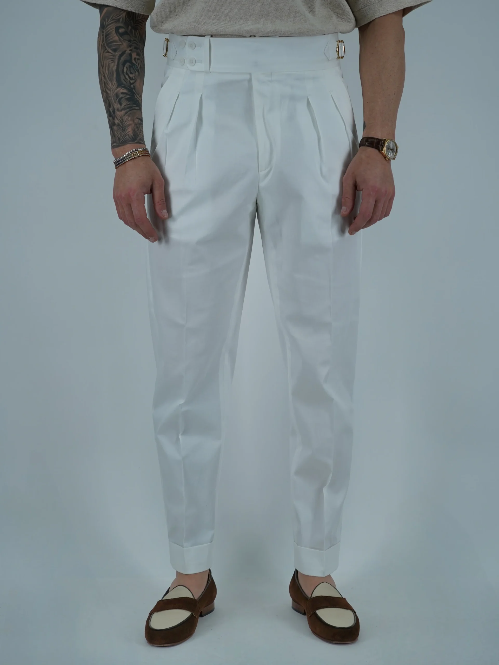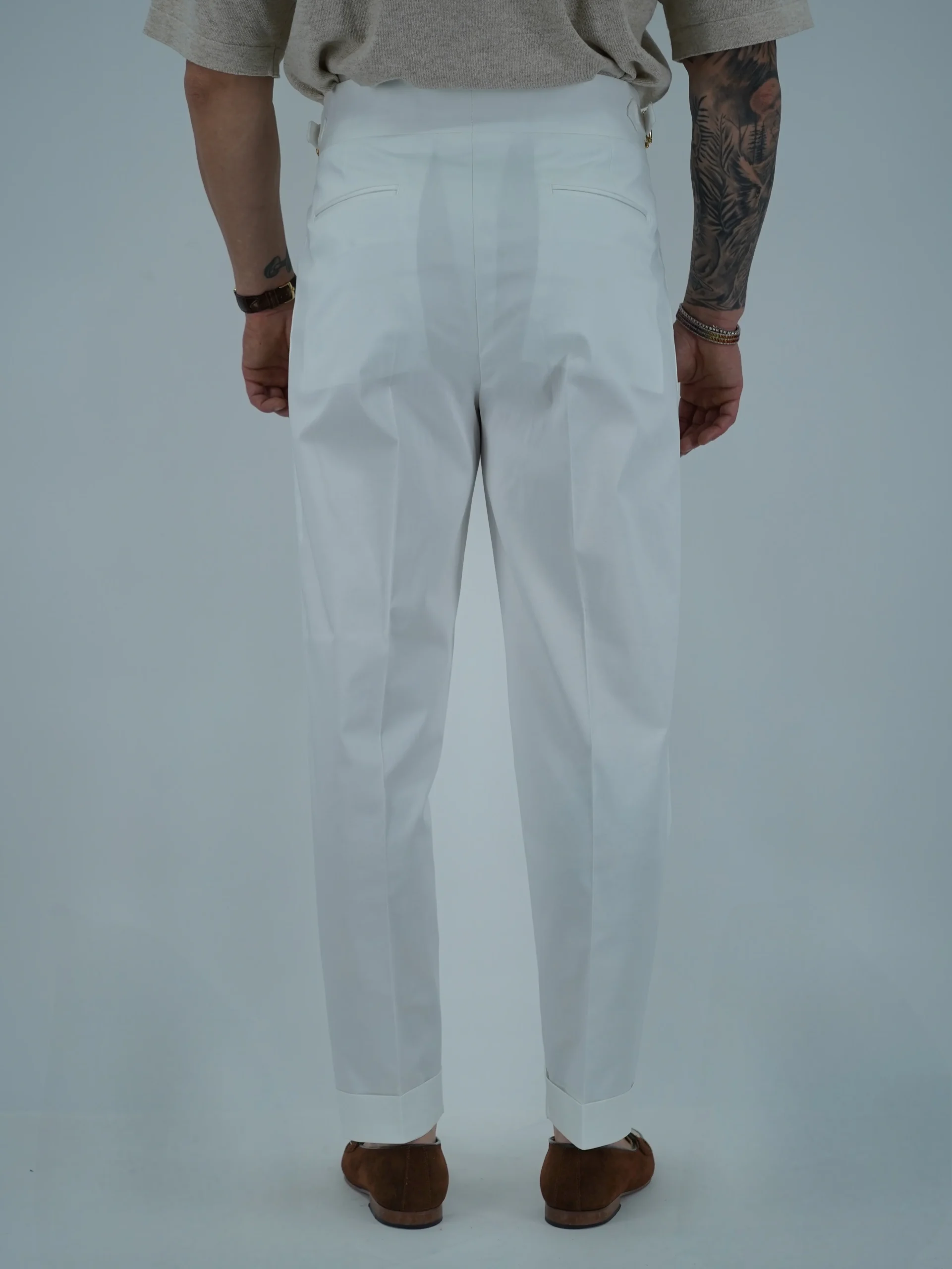 Gurkha 4 Bottoni In Cotone – Fondo 17/20cm | Doppia Fibbia Regolabile | Bianco Santorini