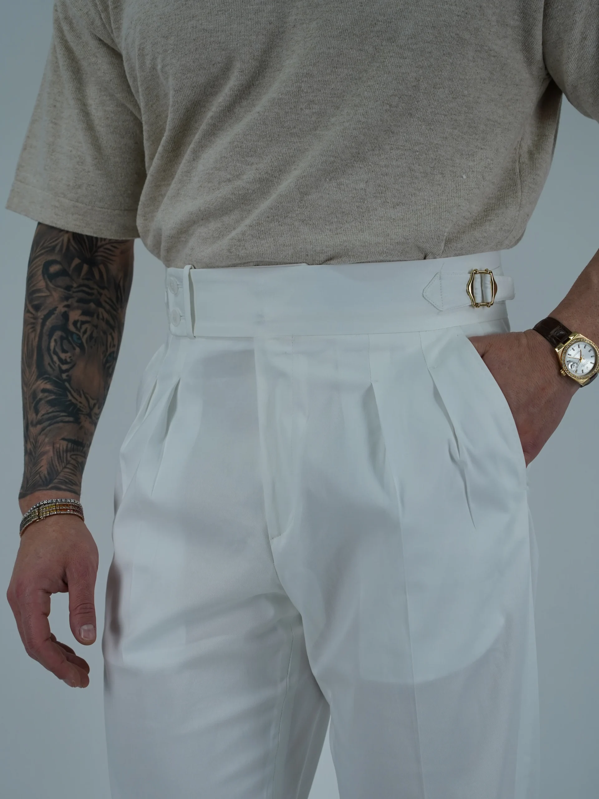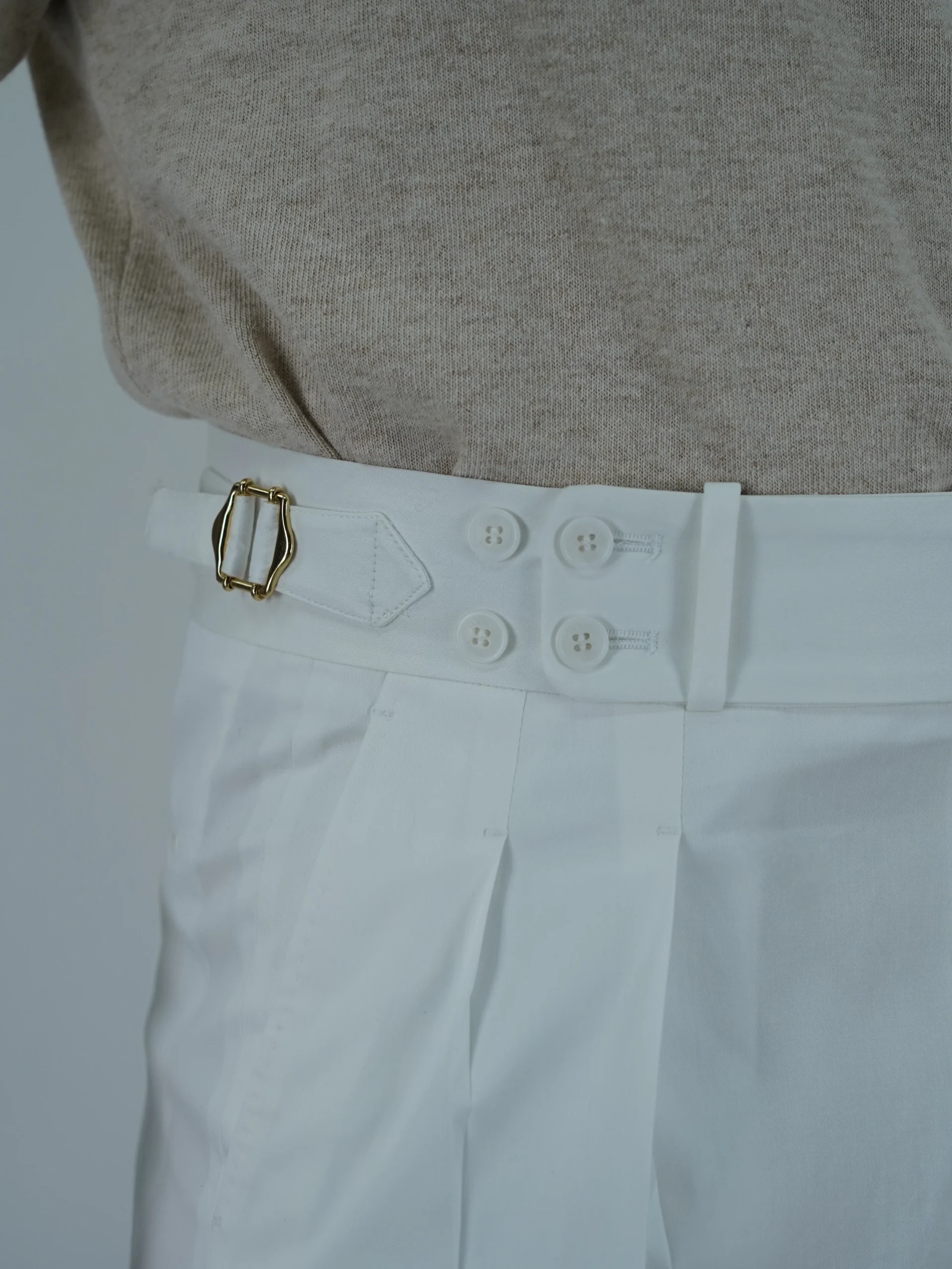 Recensisci per primo “Gurkha 4 Bottoni In Cotone – Fondo 17/20cm | Doppia Fibbia Regolabile | Bianco Santorini”