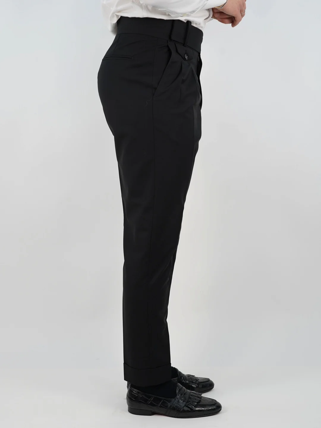 Gurkha 4 bottoni – Fondo 17/20cm | Doppia fibbia regolabile | Blu gessato rigo marrone