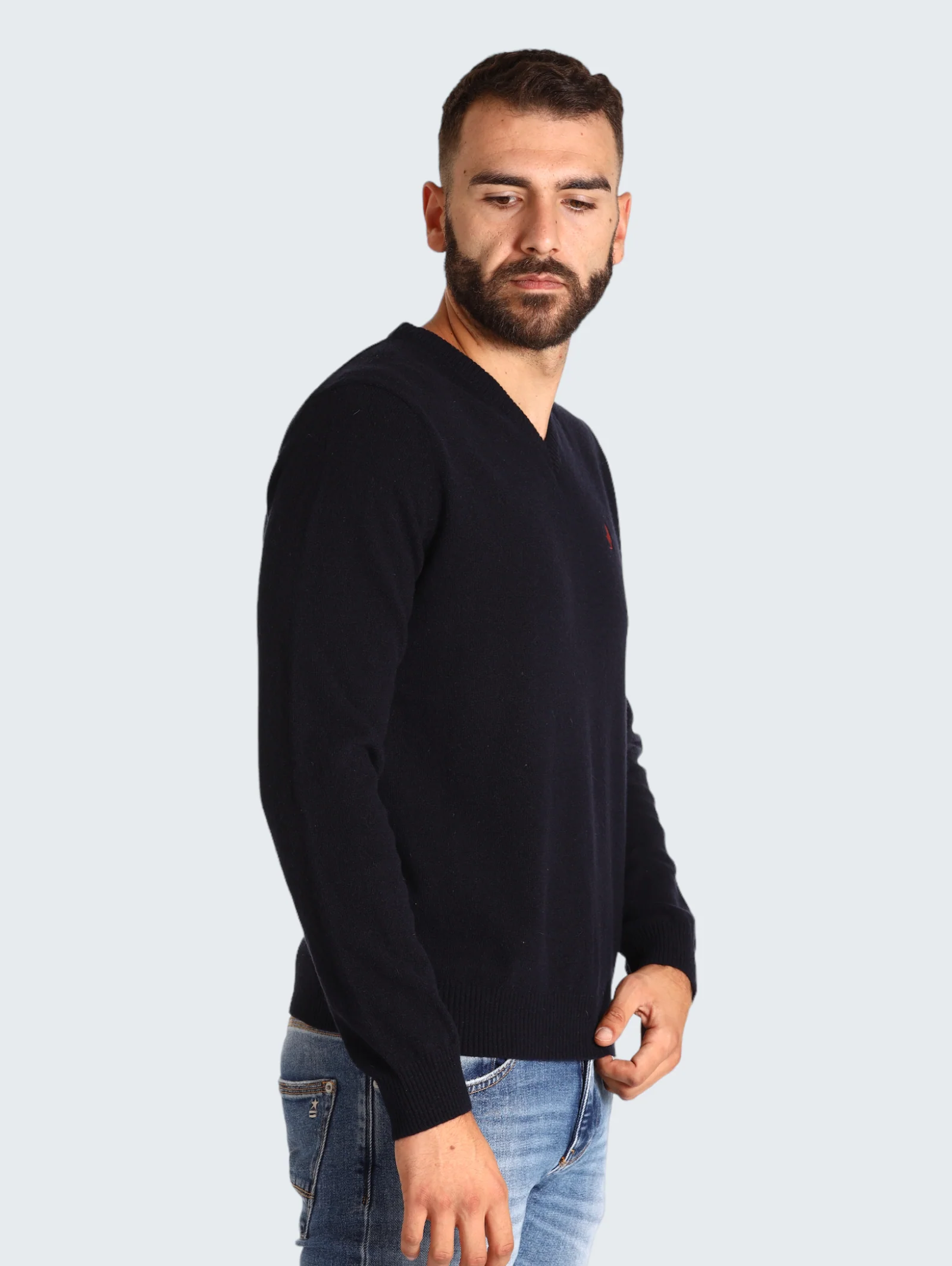 Maglione Con Scollo A V McS-M-K-09002 Blue Navy