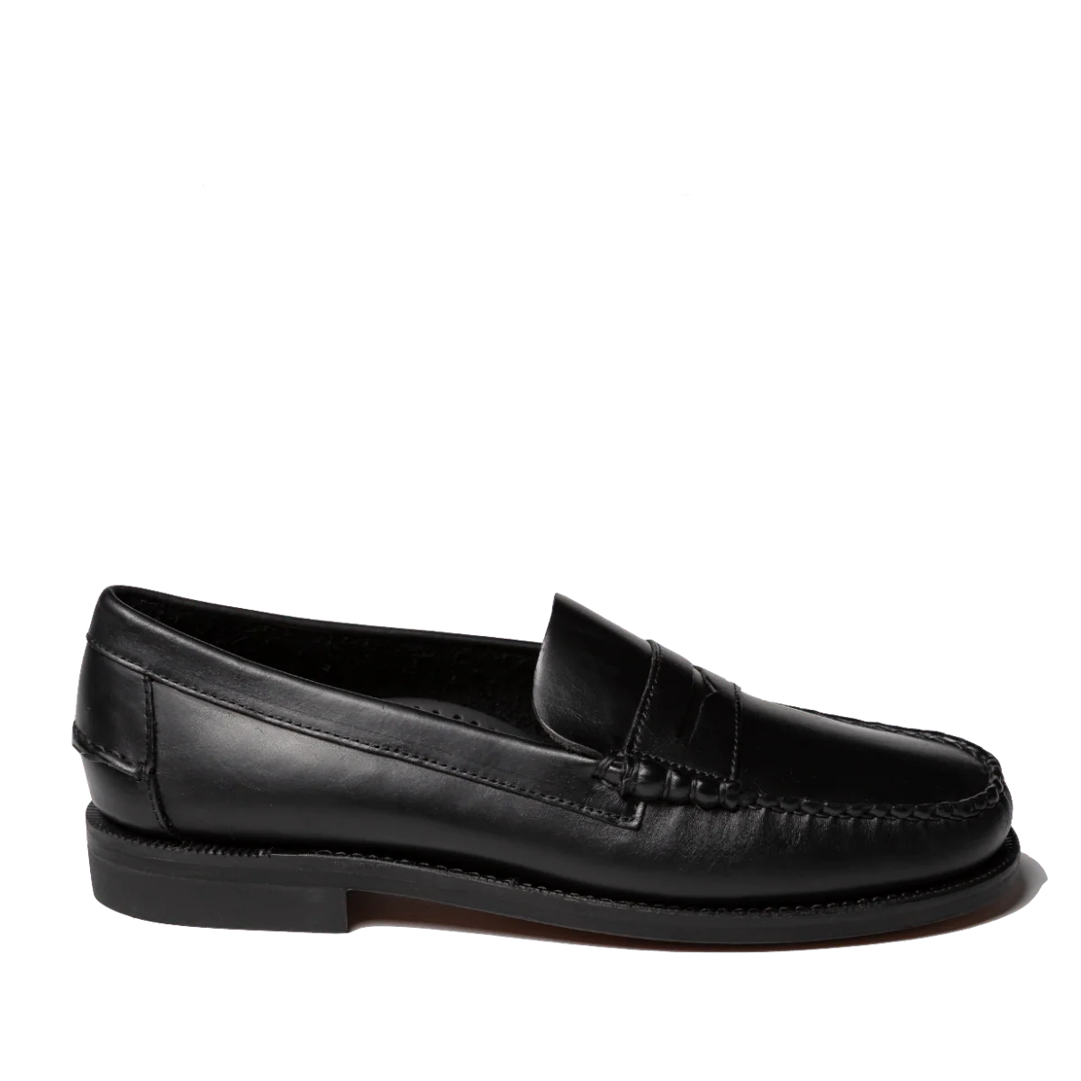 Mocassini classici, quattro stagioni, in morbida pelle oliata, robusta e impermeabile, nera. Cuciture realizzate a mano. Interno sfoderato, soletta in pelle; fondo in cuoio trattato, per resistenza e impermeabilitร , e tacco in gomma Calzata: giusta Si consiglia il proprio numero abituale