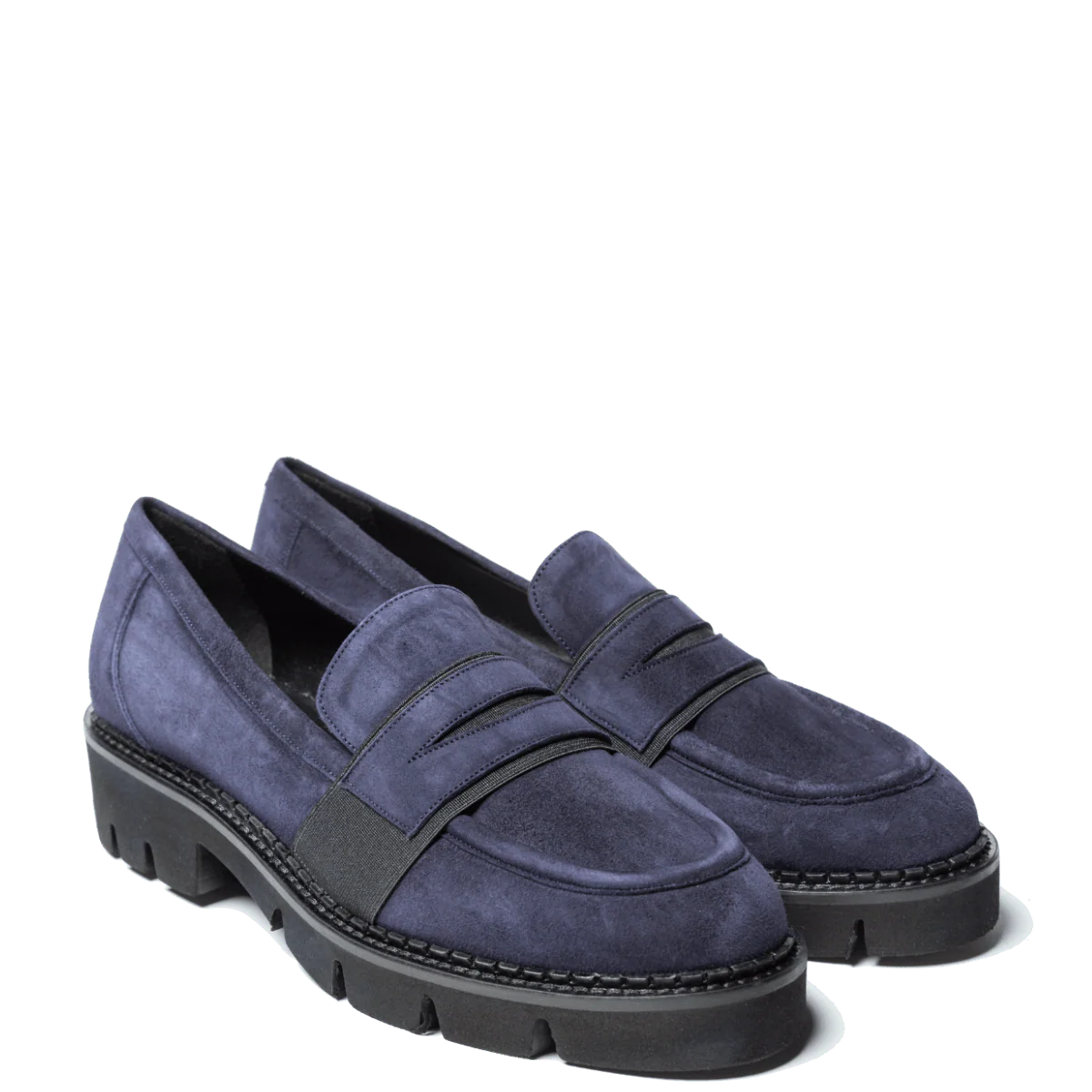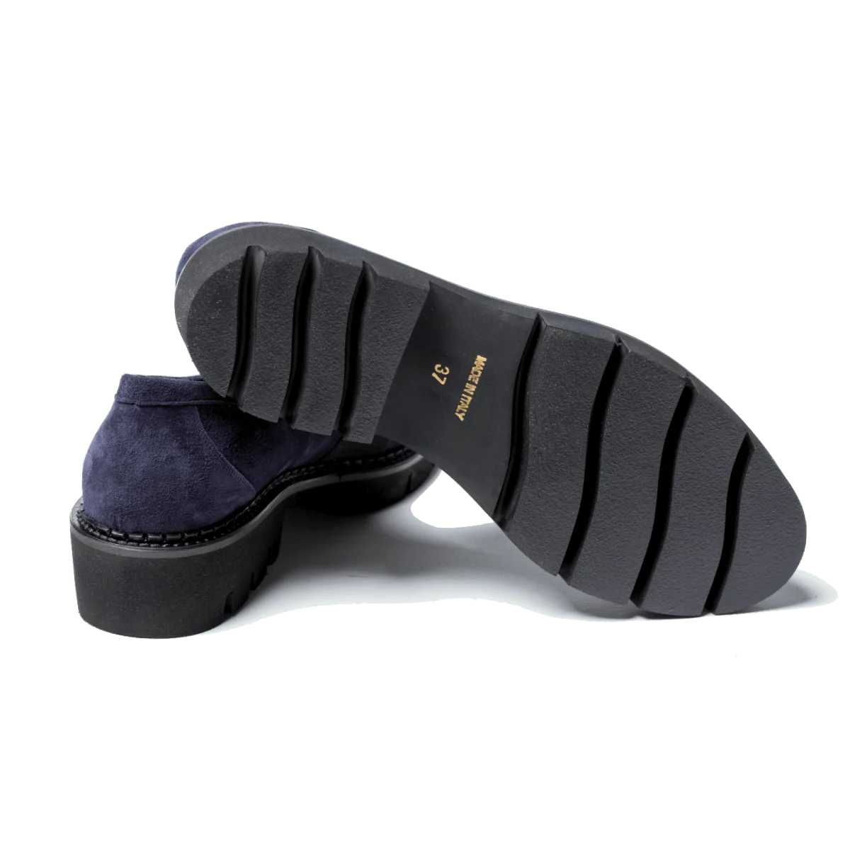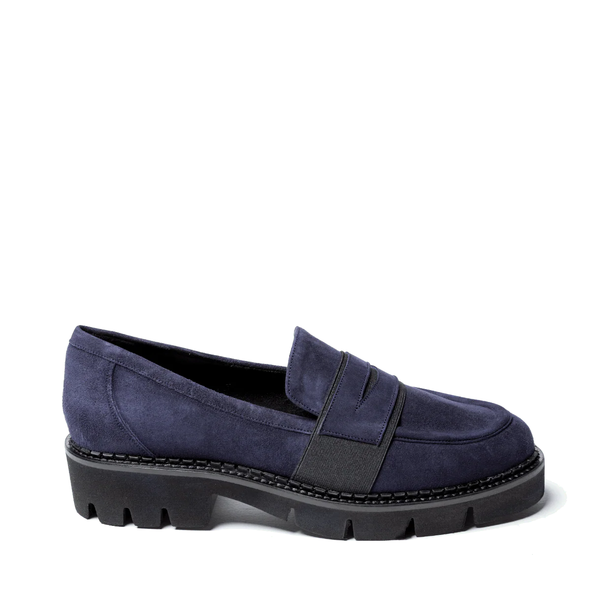 Mocassini realizzati a Napoli, con la lavorazione artigianale e l’impiego dei miglior pellami e materiali. Forma leggermente affusolata; tomaia in pelle scamosciata blu, mascherina elasticizzata sul collo del piede, con dettaglio in pelle. Fondo in gomma spessa millerighe, ultra leggera; soletta interna leggermente imbottita