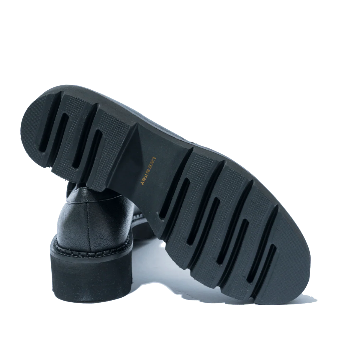 Mocassini realizzati a Napoli, con la lavorazione artigianale e l’impiego dei miglior pellami e materiali. Nappa morbida nera, leggermente bottalata. Elastico interno sul collo del piede, per favorire la camminata. Fondo in gomma spessa millerighe, ultra leggera; soletta interna leggermente imbottita