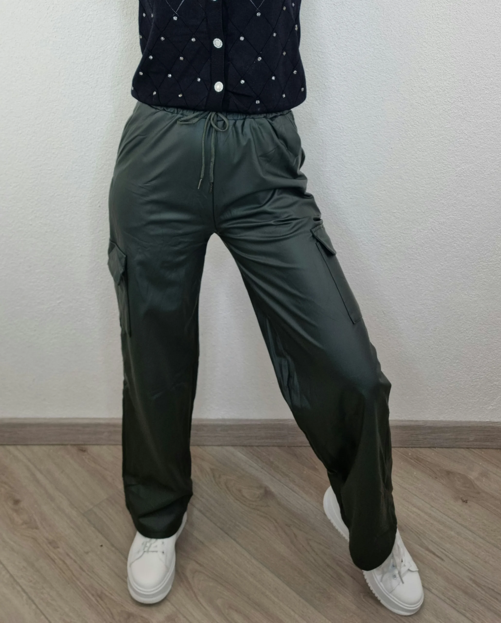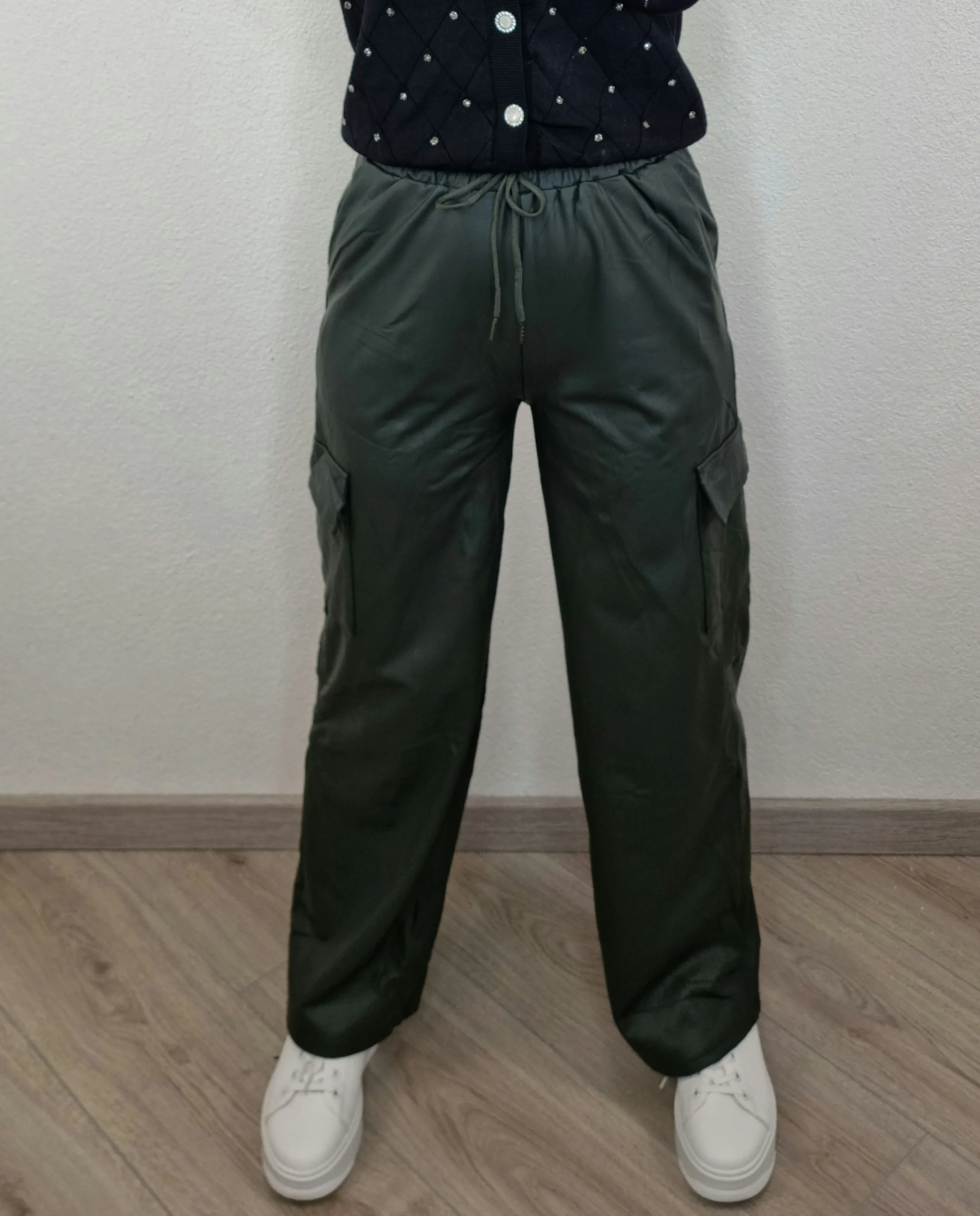 PANTALONE ECOPELLE CARGO VERDE