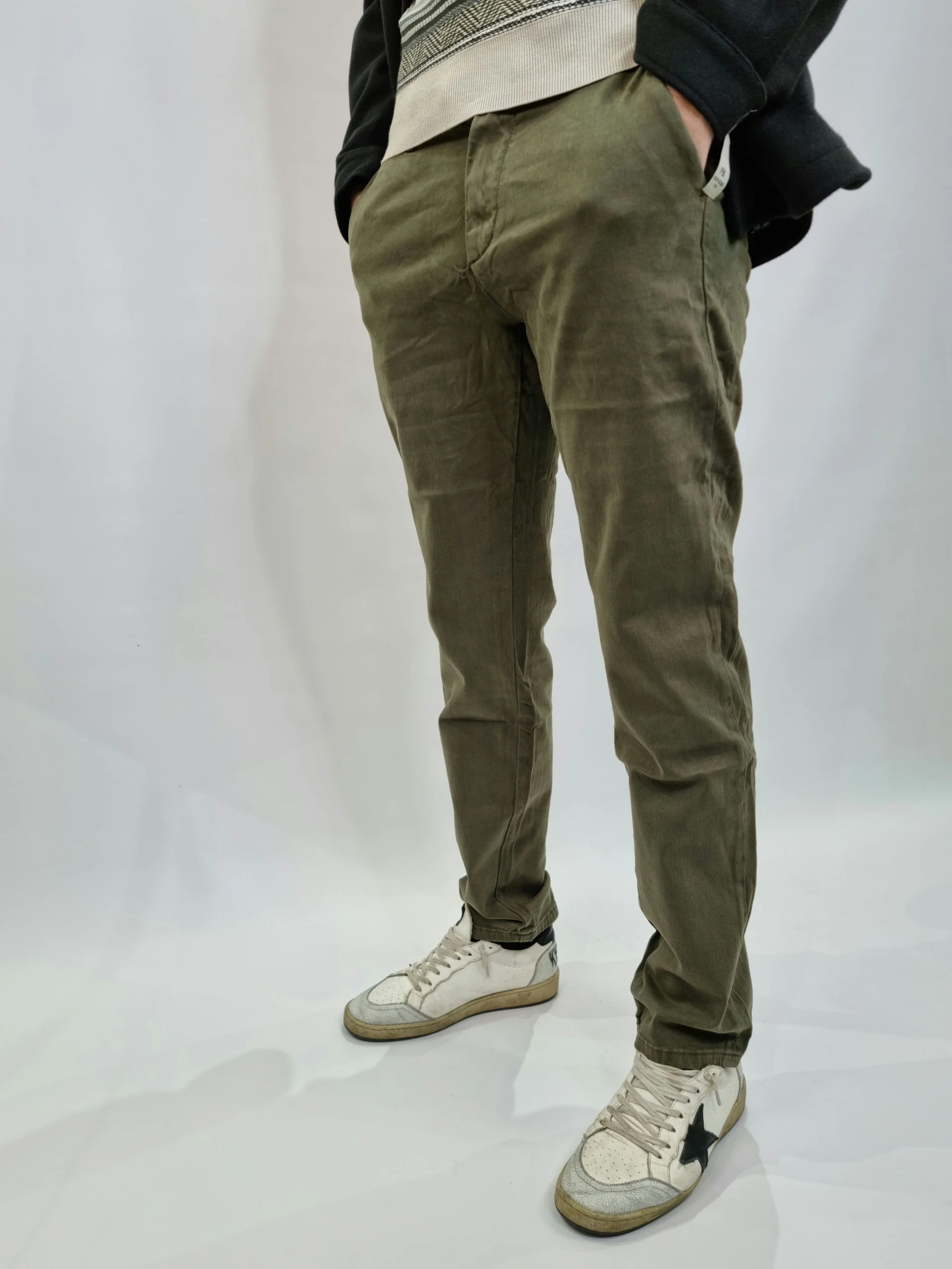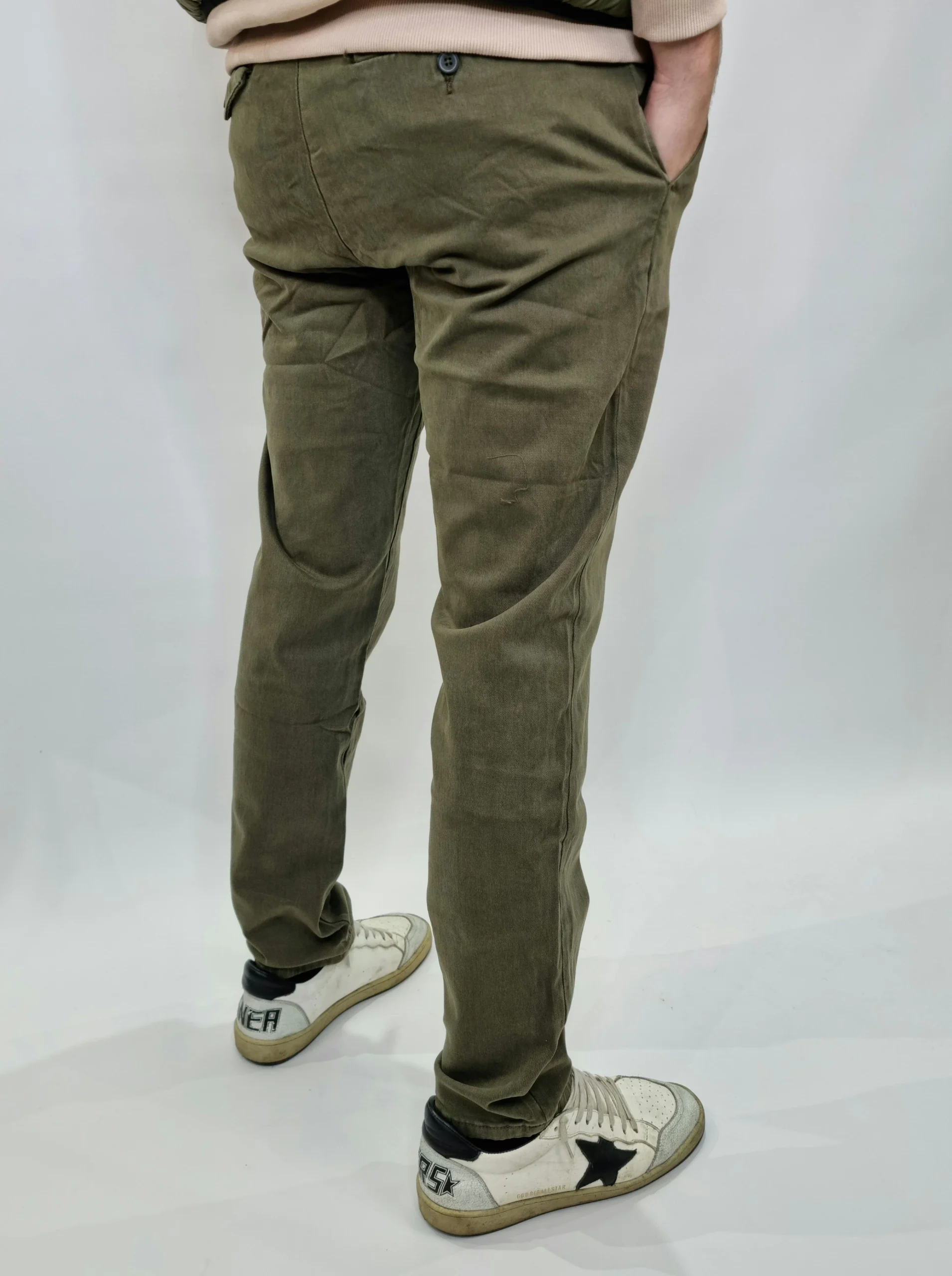 Pantalone elasticizzato taglie 46 48 50 52 54 composizione 98 % cotone 2% elastene Indossato in taglia 48 su una 48/50 altezza 185 cm