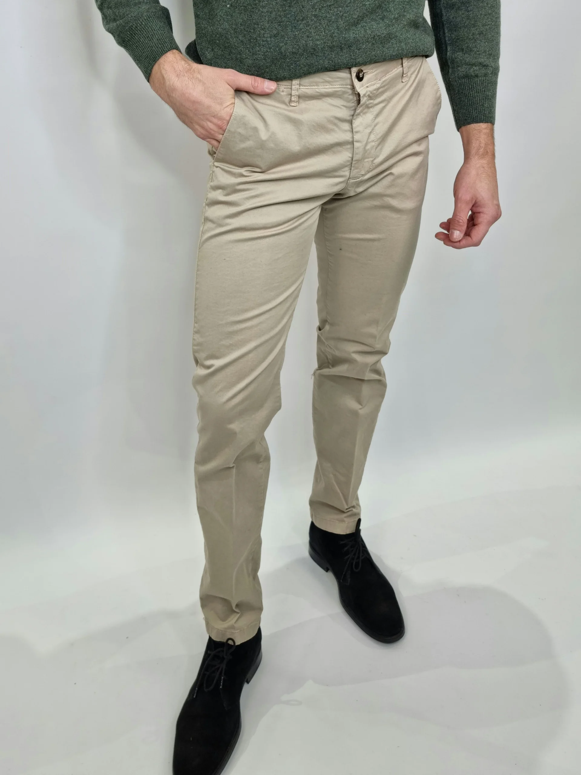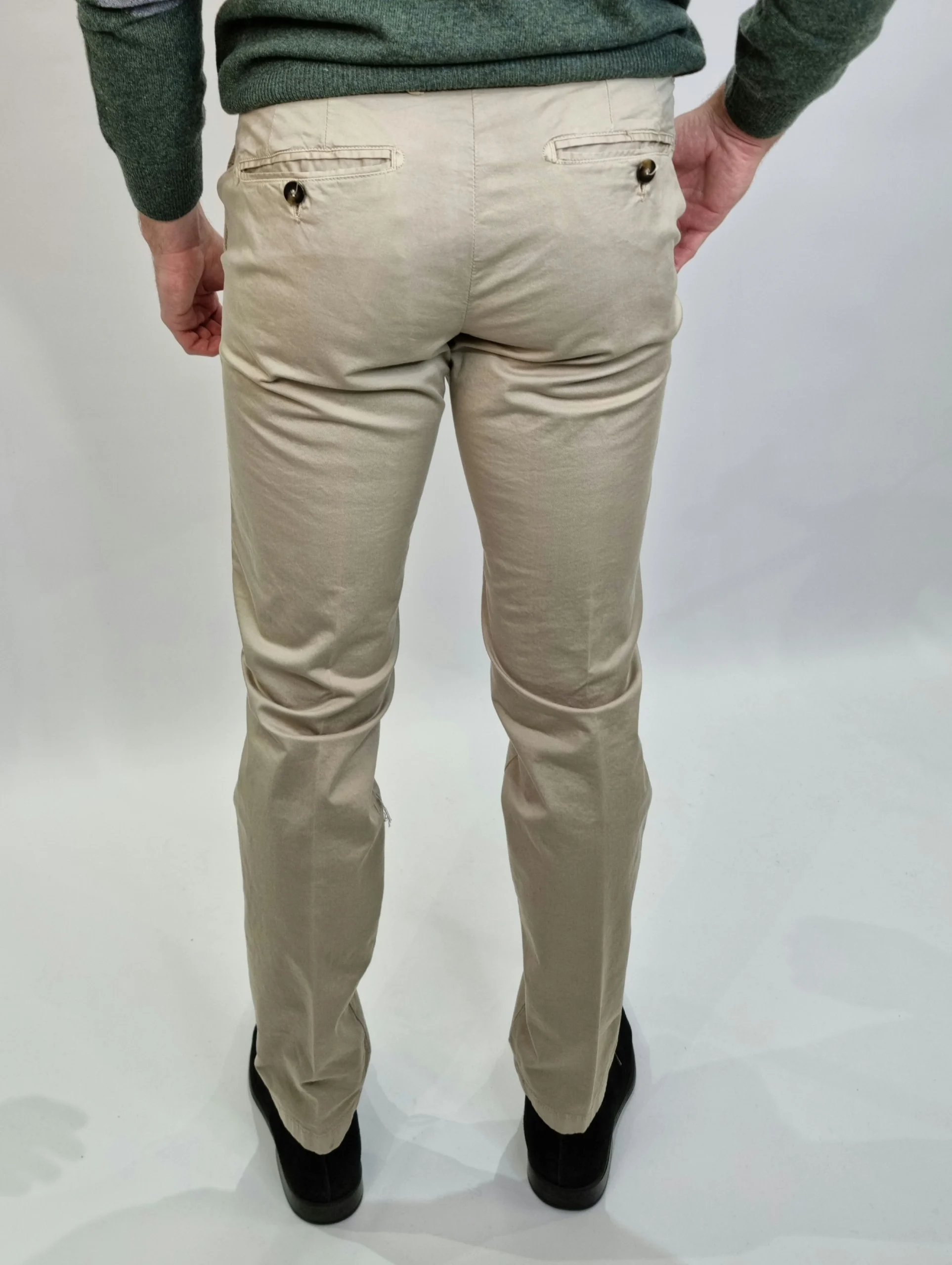 pantalone elasticizzato taglie 44 46 48 50 52 54 composizione 98% cotone 2% elastene indossati in taglia 46 su una 46 altezza 1,70