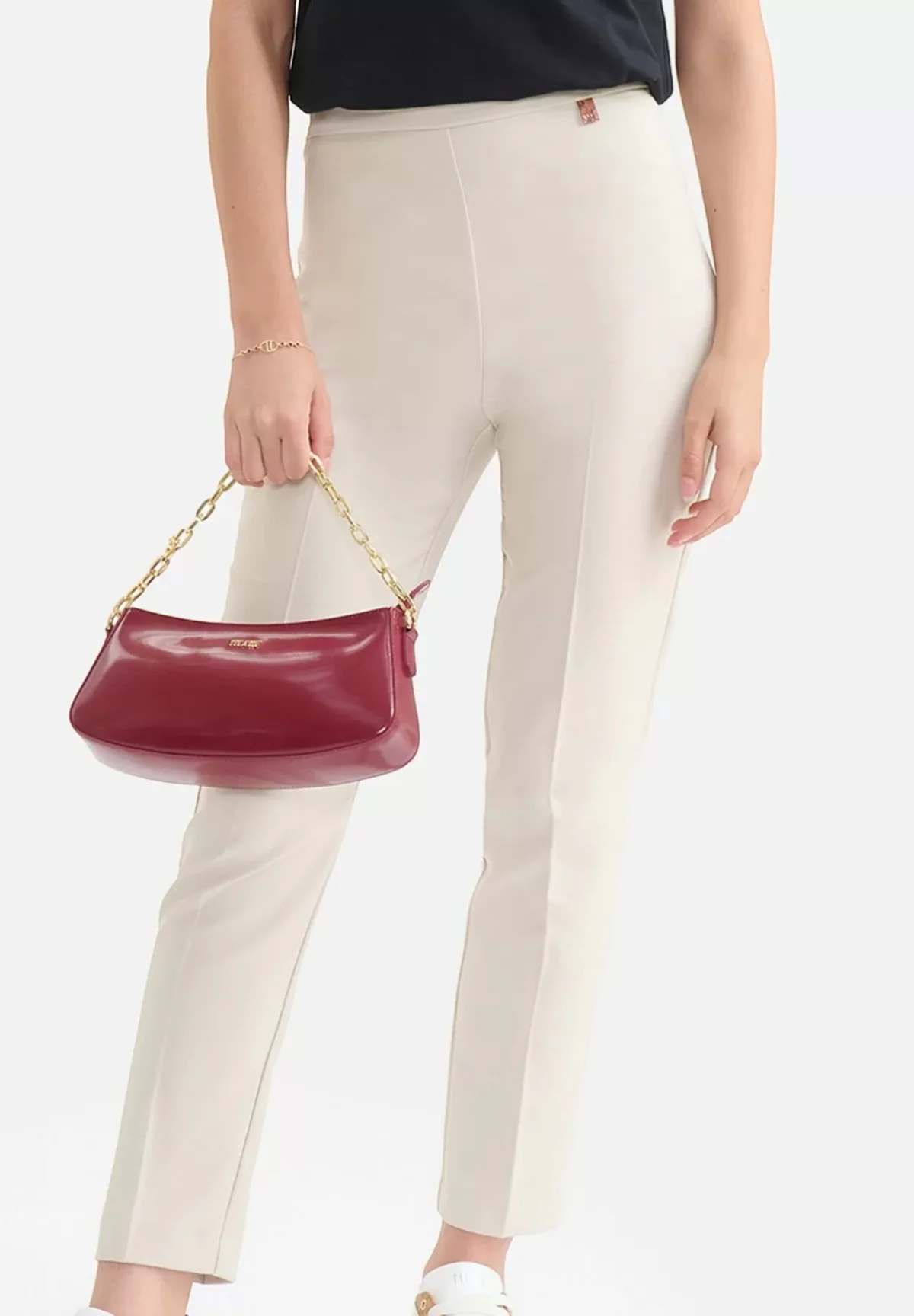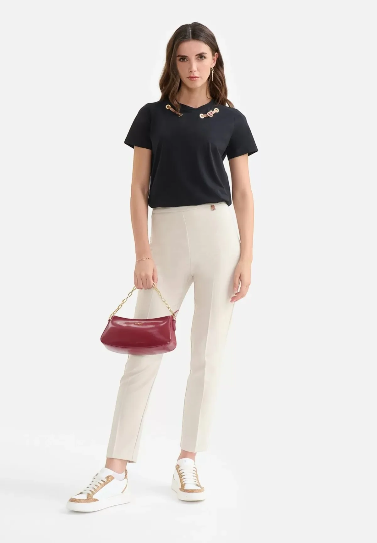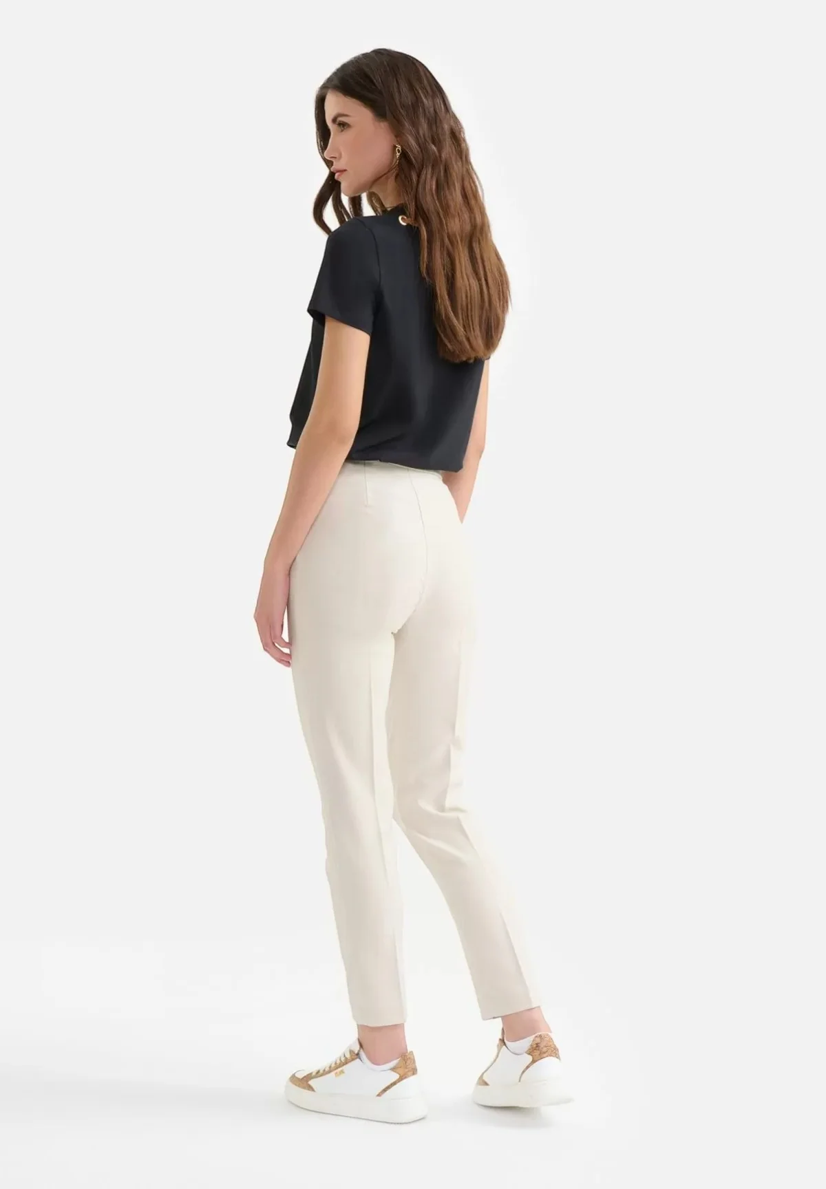 Questi pantaloni versatili si abbinano perfettamente a bluse eleganti o camicie basic per un look sofisticato. Completa l’outfit con scarpe eleganti per un tocco di classe o scegli sandali casual per un look più rilassato. Accessorize con borse e gioielli della stessa Collezione per valorizzare al massimo il tuo stile.