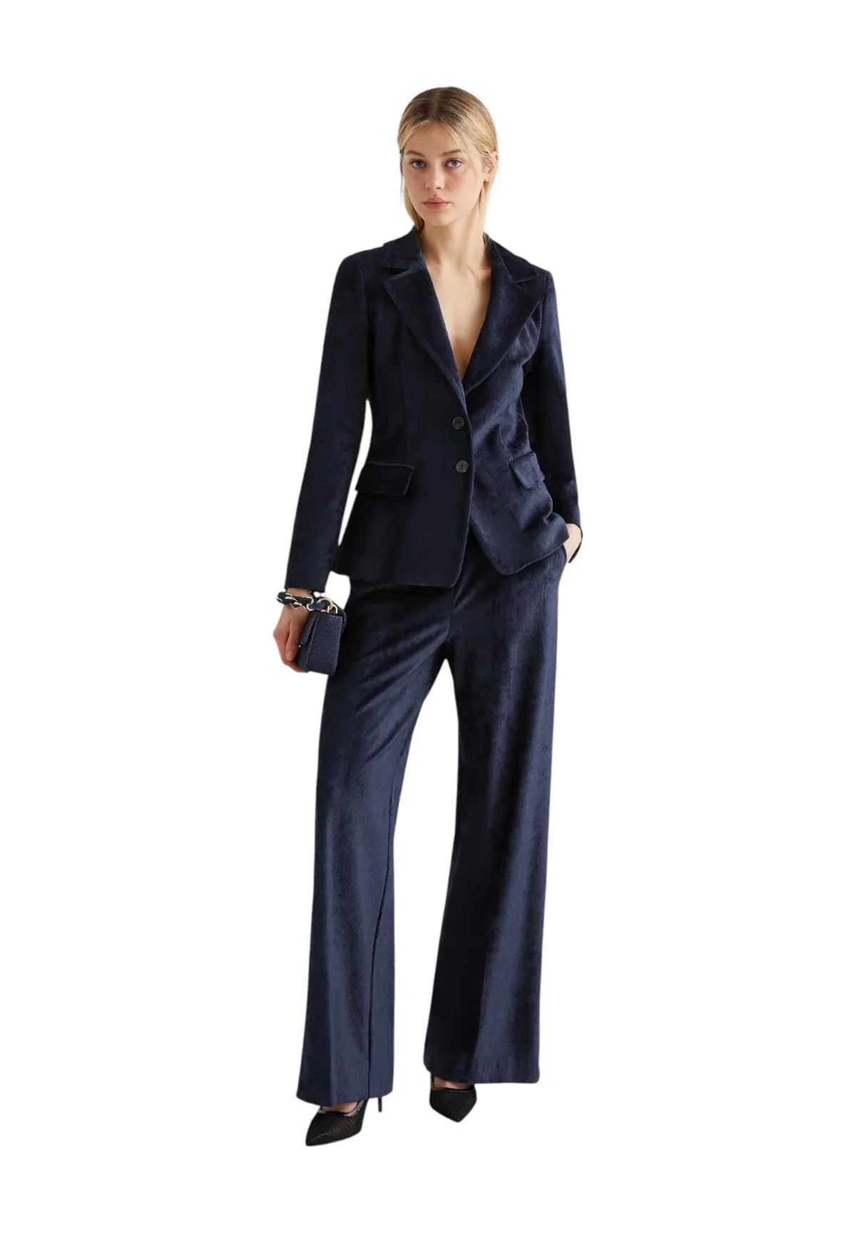- Design a gamba larga con linea dritta e fluida per una vestibilità slanciata.