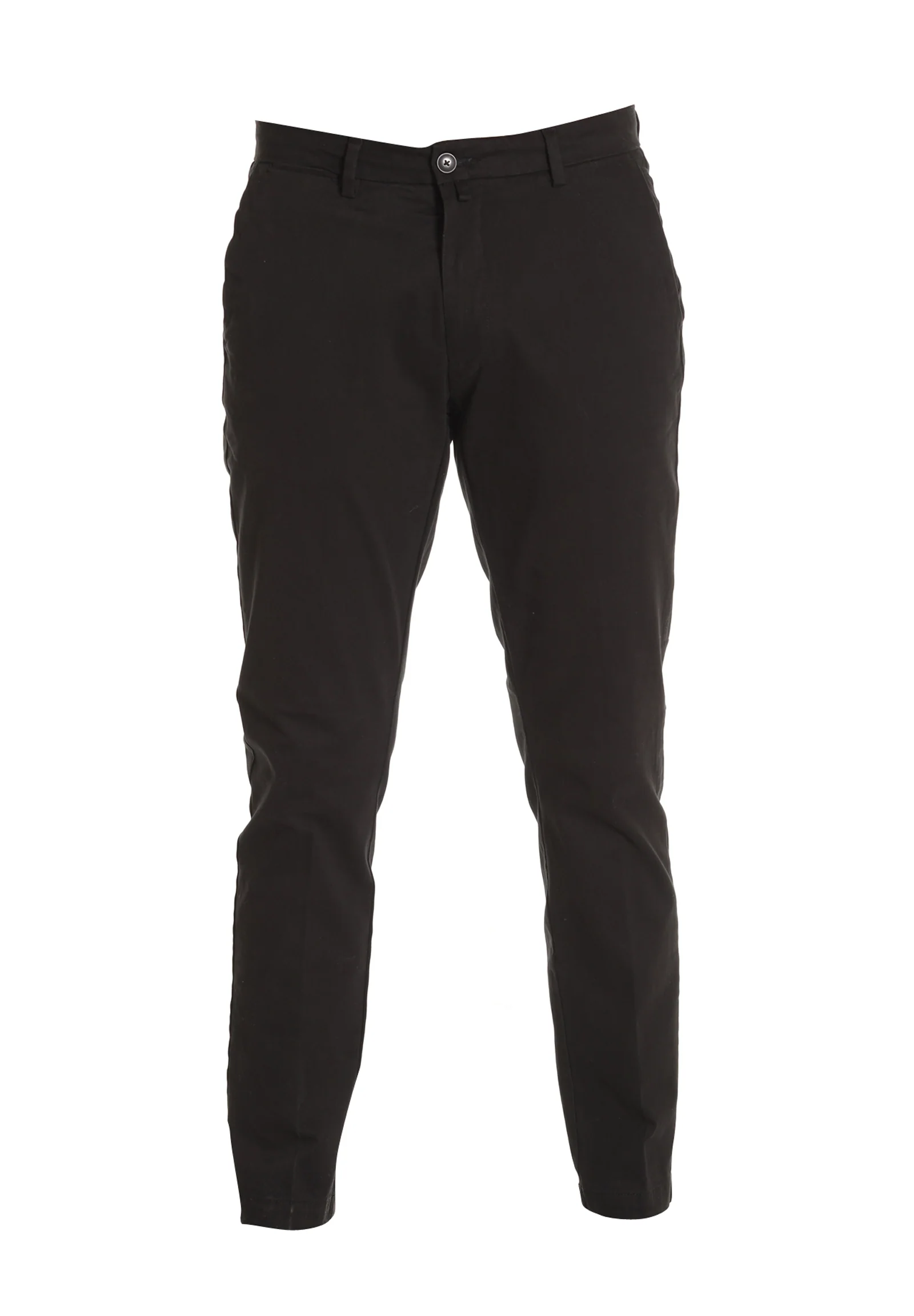 Chiusura con bottone e zip nascosta. Tasche laterali. Due tasche posteriori a filetto con bottone. Regular fit. 98% cotone, 2% elastan