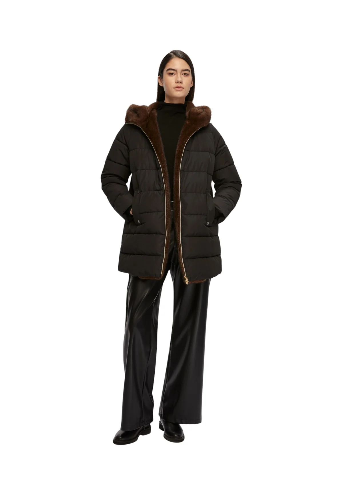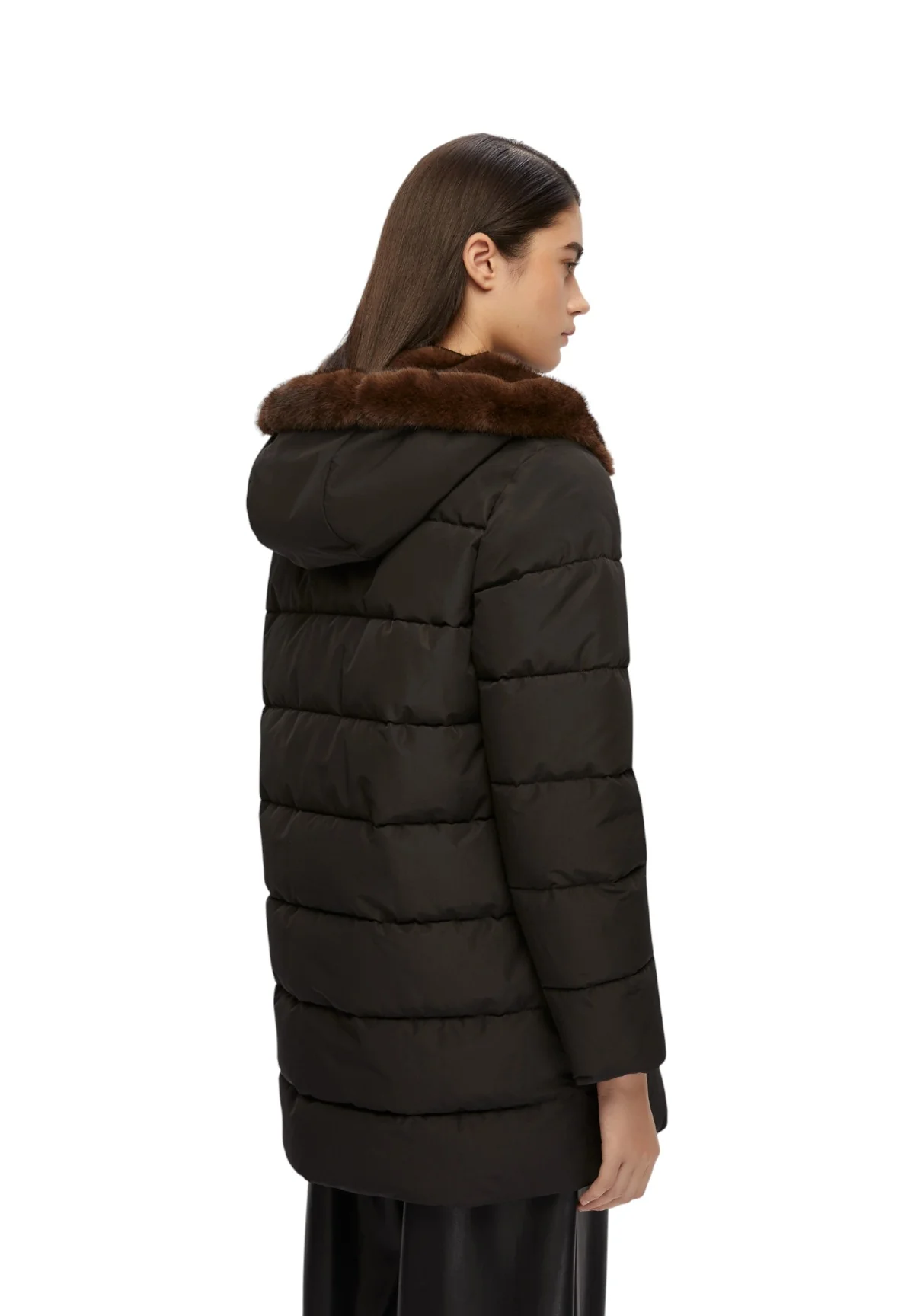 - Piumino lungo con trapuntature orizzontali