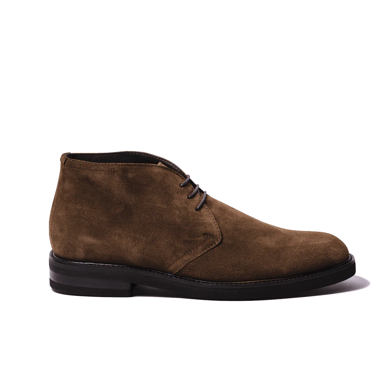 Polacchini in pelle scamosciata color noce e fondo in gomma “Vibram Gumlite” cucito su base in cuoio. Realizzati secondo la tradizione manifatturiera artigianale, radicata nel territorio campano