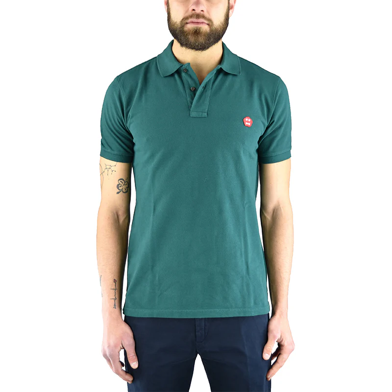 Polo ASPESI FY08 Verdone realizzata in puro cotone tinta unita con colletto e doppio bottone. Kinky Atoms cucito sul petto in contrasto di colore.