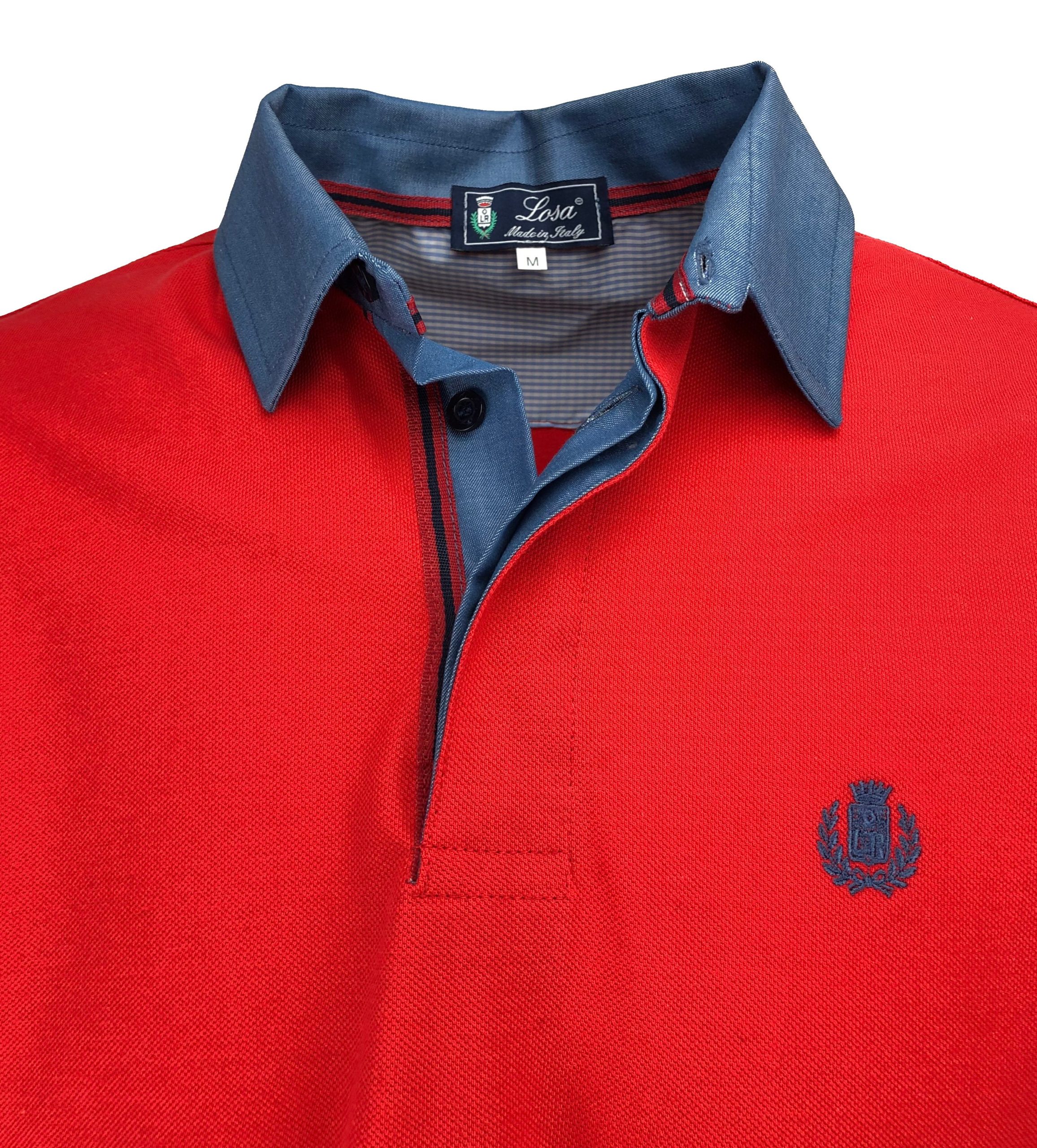 Polo da uomo a manica lunga Realizzata in tessuto piquet 100% cotone con polsini e colletto stile camicia in tessuto popeline Jeans . Rifinito con lunetta sulla parte posteriore. Tagliata, cucita e confezionata interamente in Italia. Vestibilità comoda. Guida alle taglie Istruzioni Lavaggio