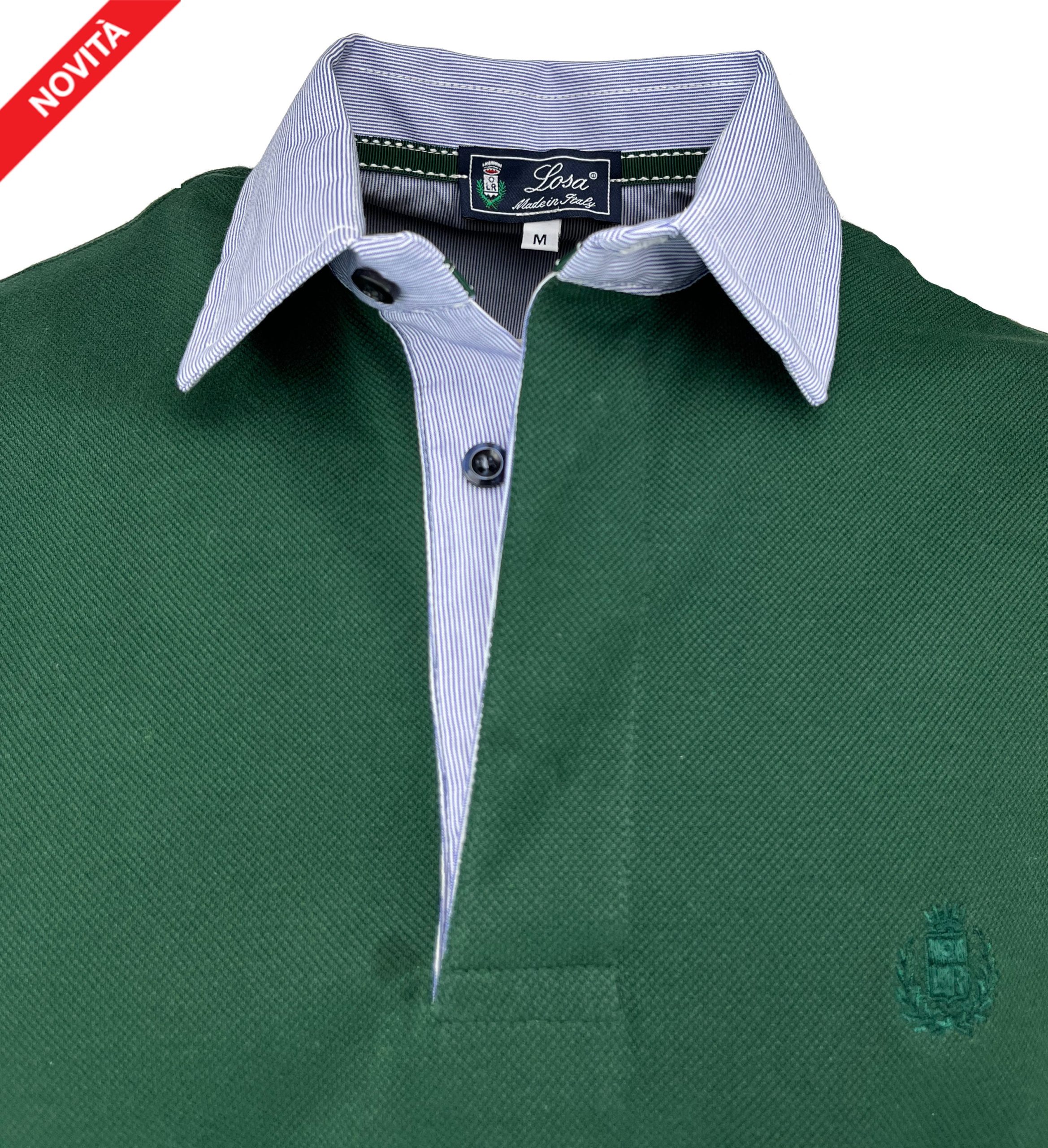 Polo da uomo a manica lunga Realizzata in tessuto Piquet 100% cotone con polsini e collo stile camicia in tessuto Cotone 100% Rigatino. Rifinito con lunetta sulla parte posteriore. Prodotto completamente dal tessuto all’assemblamento del capo in Italia. Vestibilità comoda. Guida alle taglie Istruzioni Lavaggio
