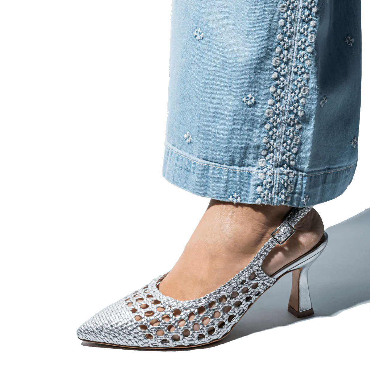 Slingback Melluso Pelle Traforato e Intreccio Platino