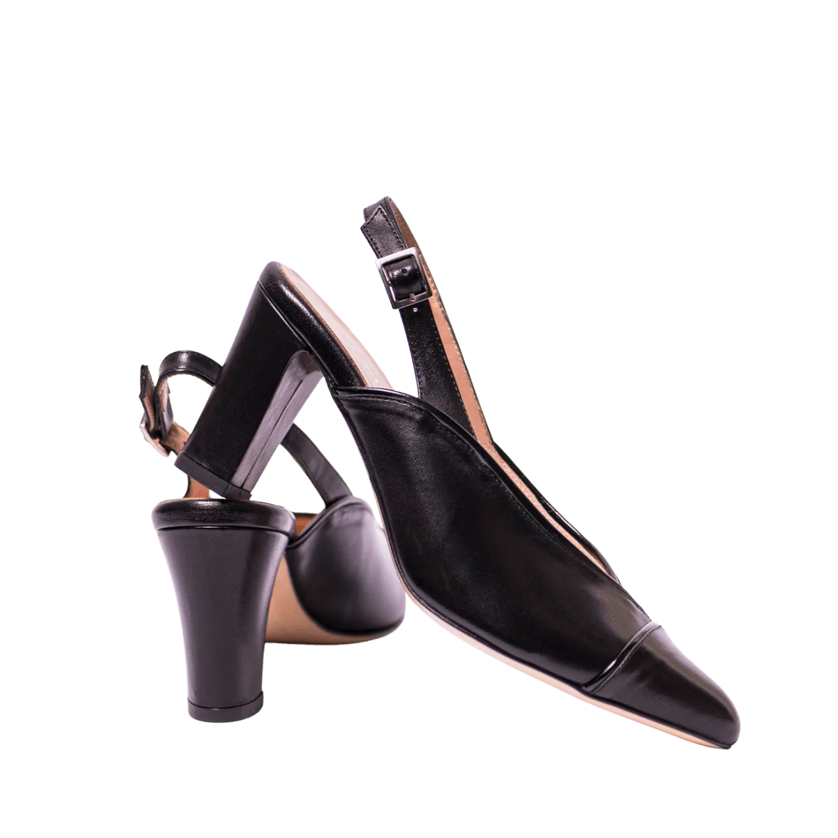 Slingback Savorè Nappa Nero Bordino Vernice Nero