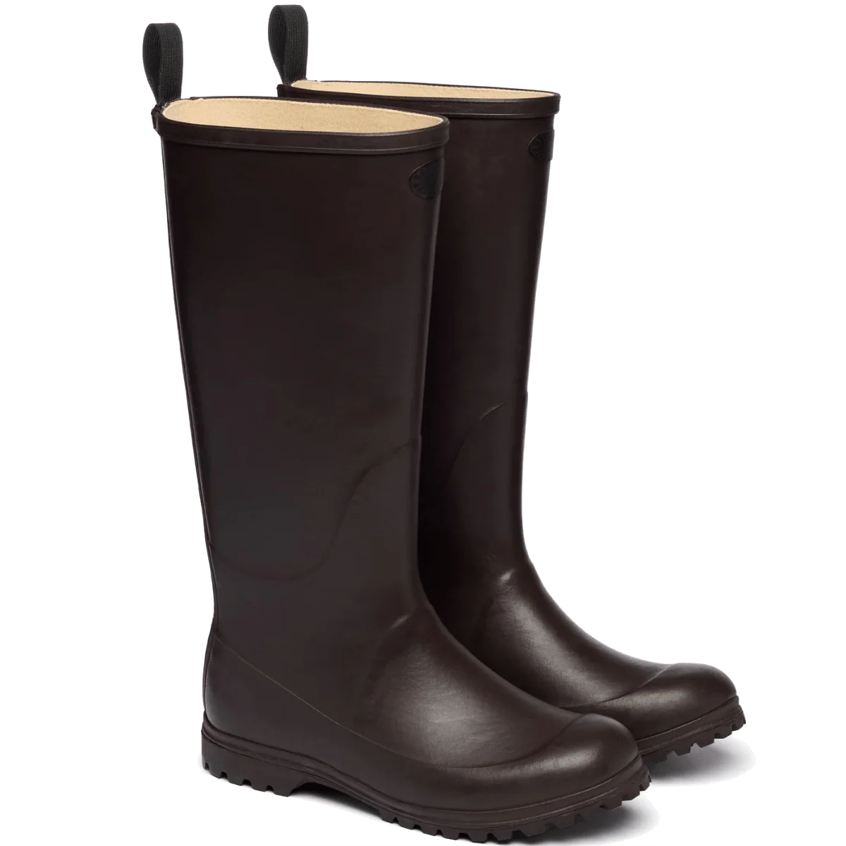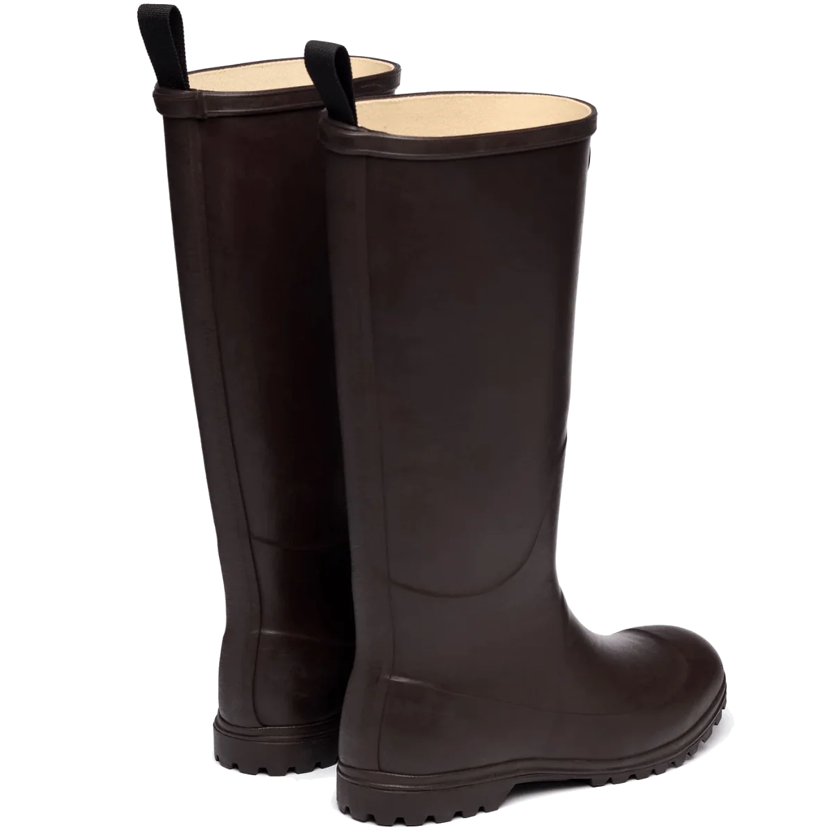 Stivali molto comodi, con tomaia in 100% morbida gomma marrone, e fodera in cotone. Suola in “carro armato” antiscivolo, per una aderenza al terreno ottimale durante le giornate piovose, con tacco di altezza 2.5 cm. Asola sul retro, che facilita l’ingresso del piede. Morbida soletta in cotone, rimovibile