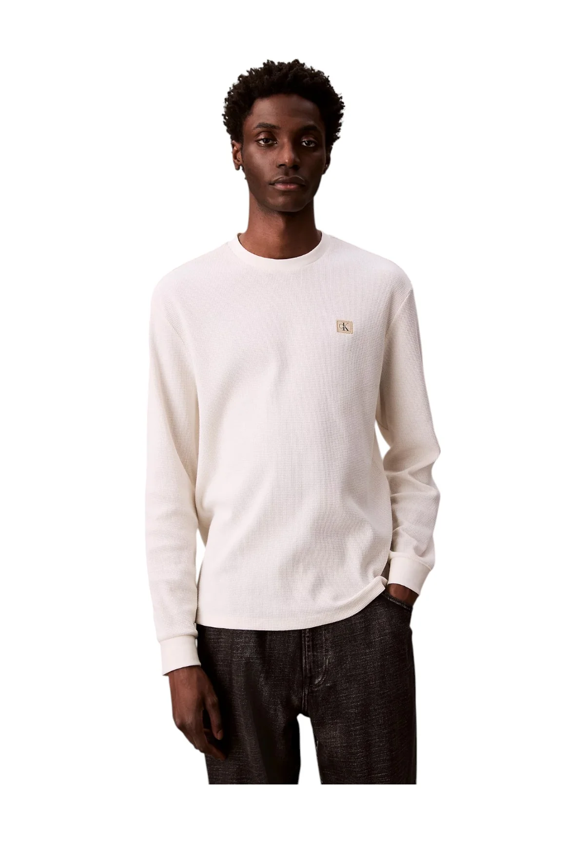 T-shirt a Maniche Lunghe Waffle Badge Crew LV040EM217 Tofu
