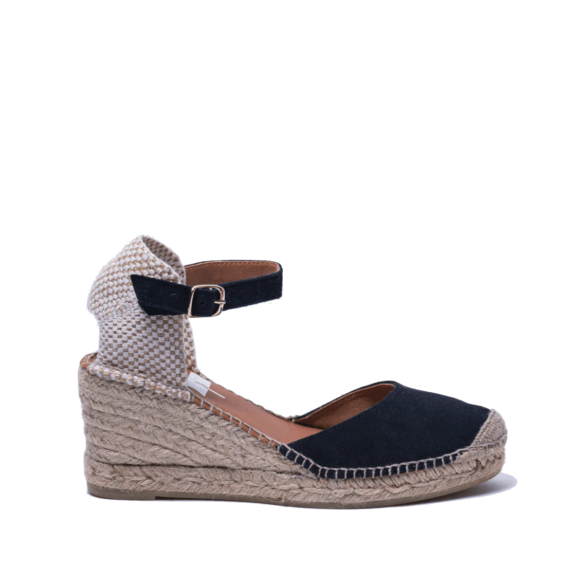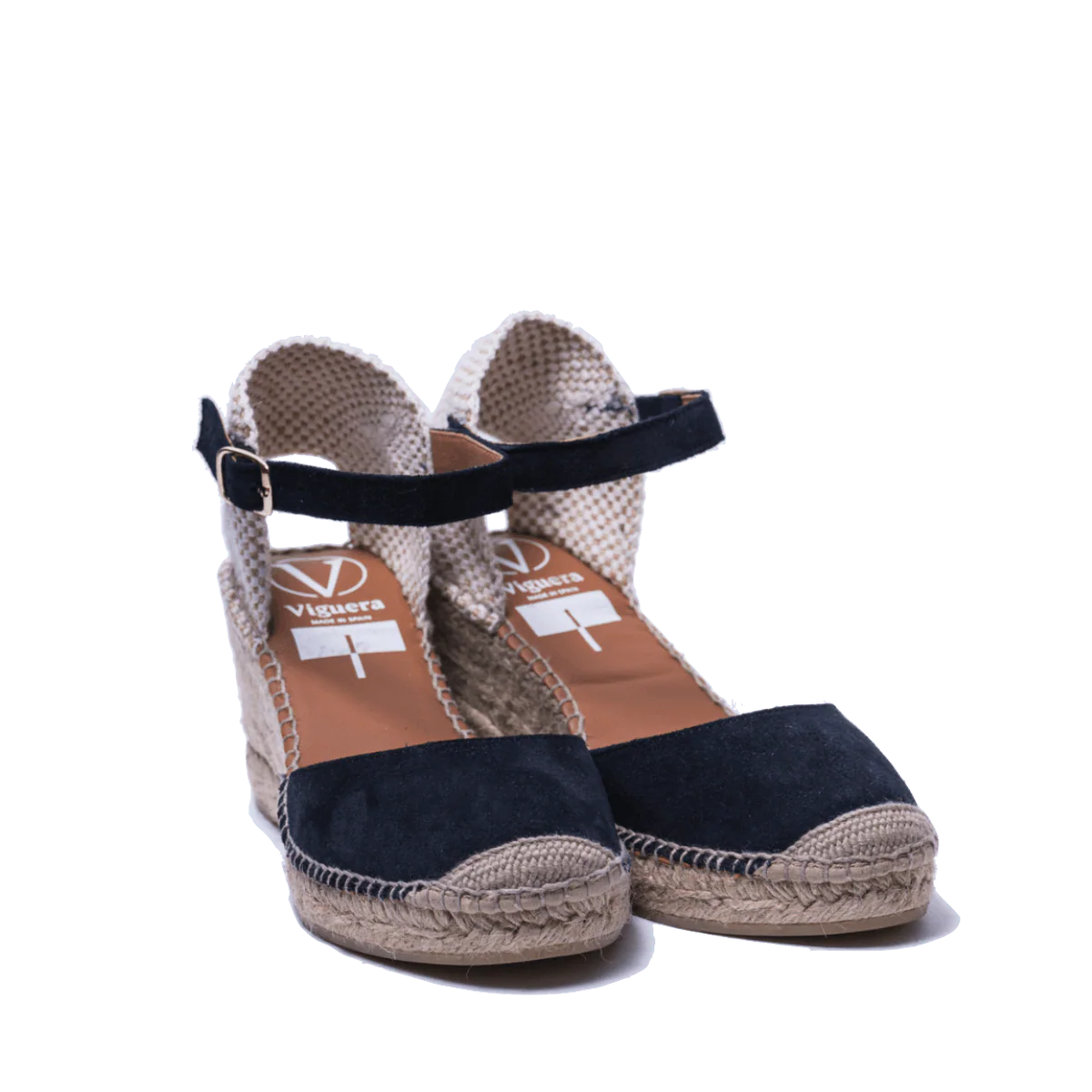 Zeppe in corda, 100% spagnole, con tomaia in pelle scamosciata blu, fodera in pelle e sottopiede imbottito. Retro in tessuto morbido e cinturino alla caviglia, regolabile, in pelle Altezza zeppa: 7 cm Calzata: stretta Si consiglia un numero in piรน rispetto a quello abituale